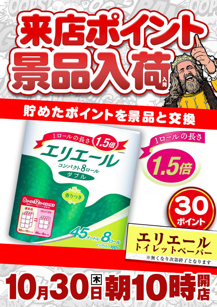 10月30日【木】☀️朝10時開店☀️ 10月はトコトンッ!!《🔥積極🔥》 #最新機種&#人気機種 は 長浜のキングで楽しんじゃって❤️ 🅿️🔄来店ポイント交換会🔄🅿️ 今回は、🧻トイレットペーパー🧻 ㊙️最新情報㊙️はコチラ⬇️ kingkanko-shiga.com/nagahama/ #滋賀 #長浜 #キング観光 #ポイント交換会 pic.x.com/cltgzDWMap