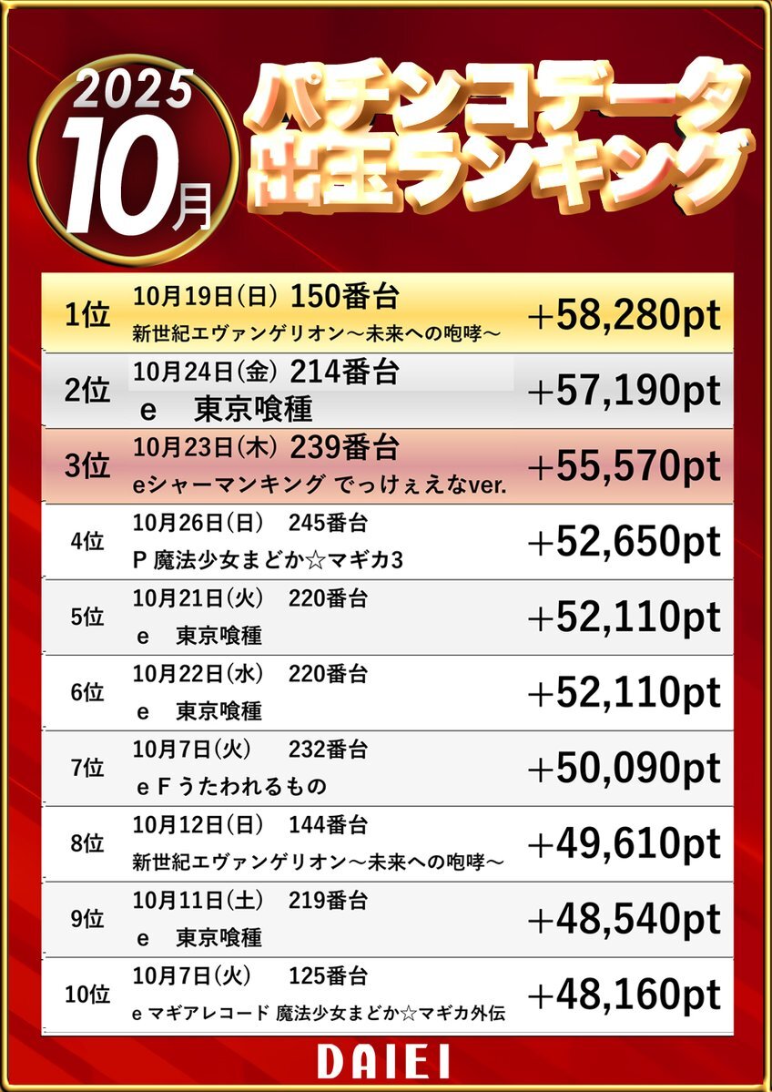 スーパーDステーション金古店 本日 🌸華の金曜日🌸 PSランキング😎👍 やっぱ、人気機種筆頭に! 上位素晴らしいᐠ( ᐛ )ᐟです 明日も初来店の @nanatenpai773 さん 見逃せませんね👀👀👀💕︎ #Dステ #金古 #ランキング #nanami #来店 #人気機種 pic.x.com/yUiY9o8uEG x.com/dstation_kanek…