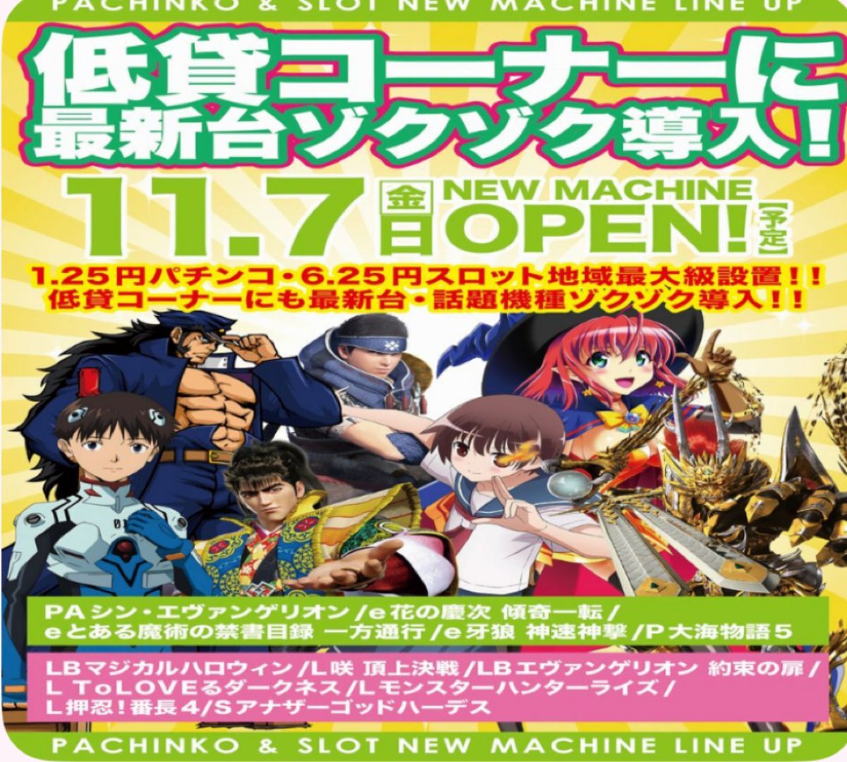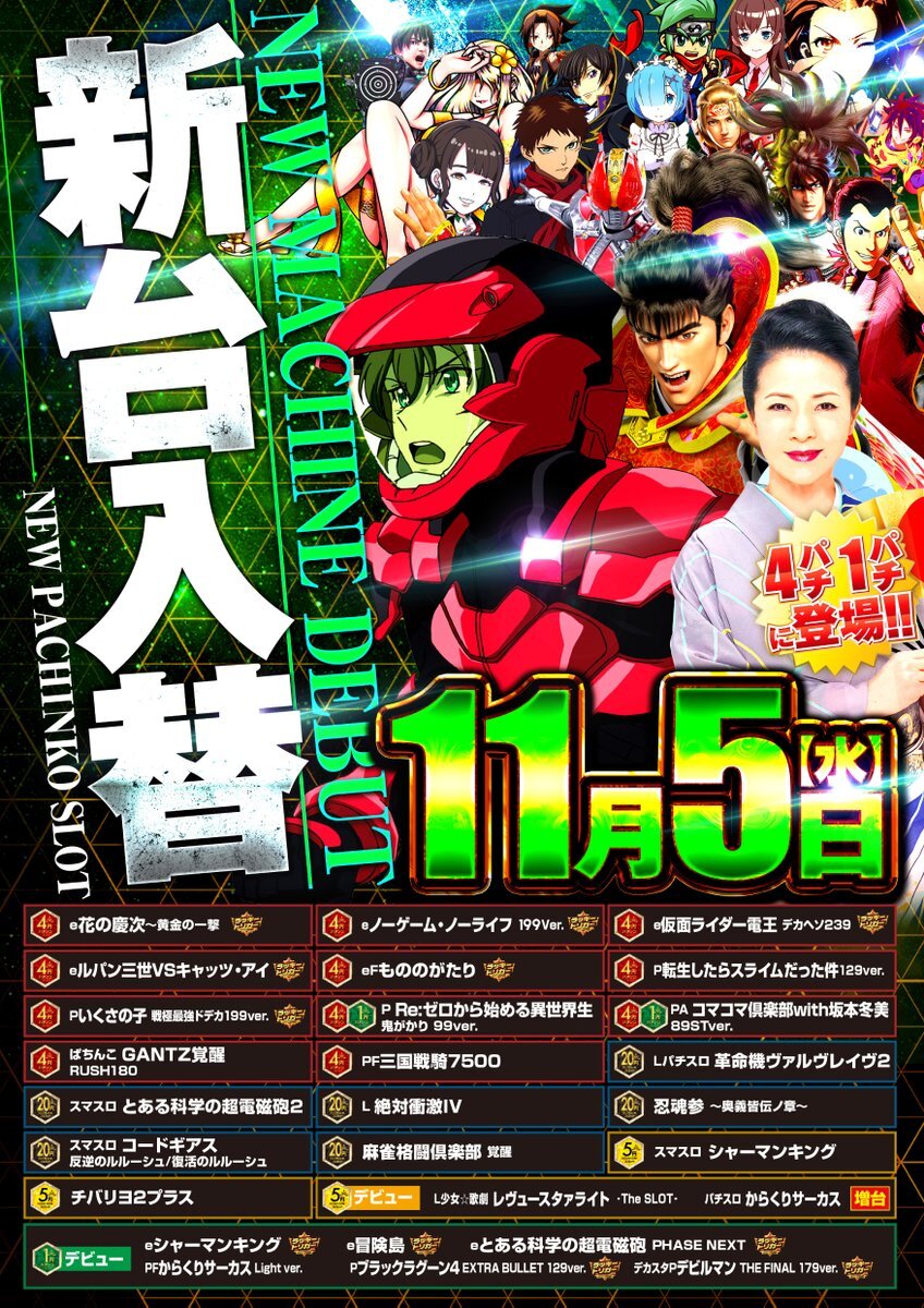 こんばんは🌛 明日11月6日のご案内です‼️ ❤️💚#スロパチガールPS 来店💚❤️ 🌺🀄️#こなたそ さん 初来店🀄️🌺 さらにっ‼️#新台入替 3⃣日目💥💥 #パチンコ ・ #スロット ともに 最新機種導入済み✨✨ #人気機種 ・ #最新機種 どちらで遊びますか❓❓ ⏰LINE抽選受付時間は9時~9時45分⏰ pic.x.com/dd90oAxpGC