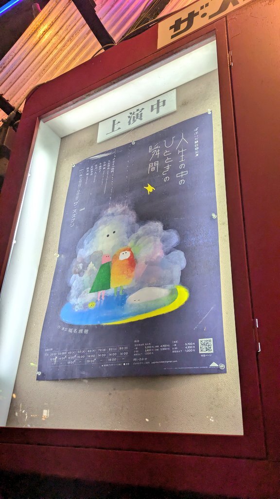 久々のスズナリ。 りさちゃんご出演の #ぱぷりか 『#人生の中のひとときの瞬間 』 私、たぶん小劇場での観劇は 長女を出産して以来はじめてで… 4年ぶり?とかなのかもしれない🙌🏻🫧 大好きな小劇場の空間で、 優しい灯火の灯ったお芝居を 見る事が出来て幸せでした🌱 千穐楽おめでとうございます✨ pic.x.com/uea9eyoPeP