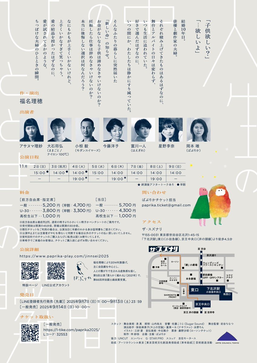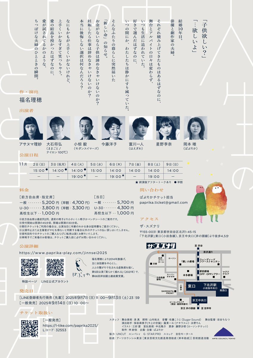 📣情報公開📣|ぱぷりか🦜 \ 新作公演 / ぱぷりか第8回公演 『人生の中のひとときの瞬間』 作・演出 : 福名理穂 [日程] 2025年11月2日(日)〜11月9日(日) [会場] ザ・スズナリ ▶︎paprika-play.com/jinnsei2025