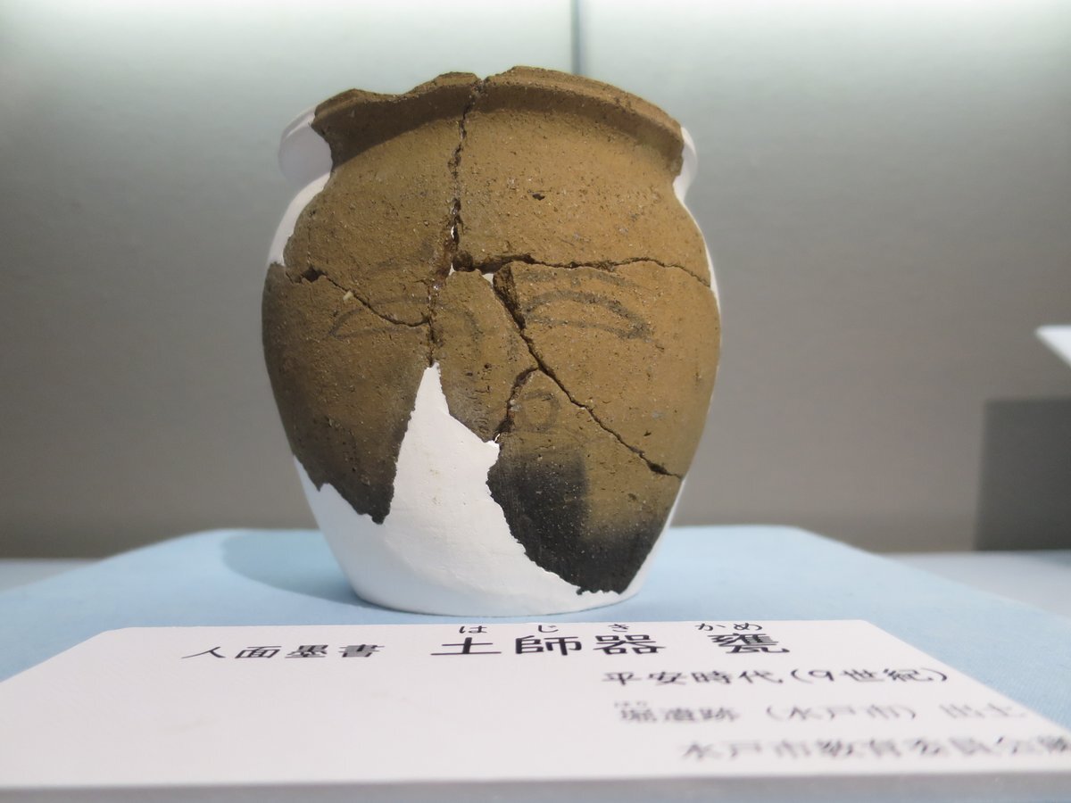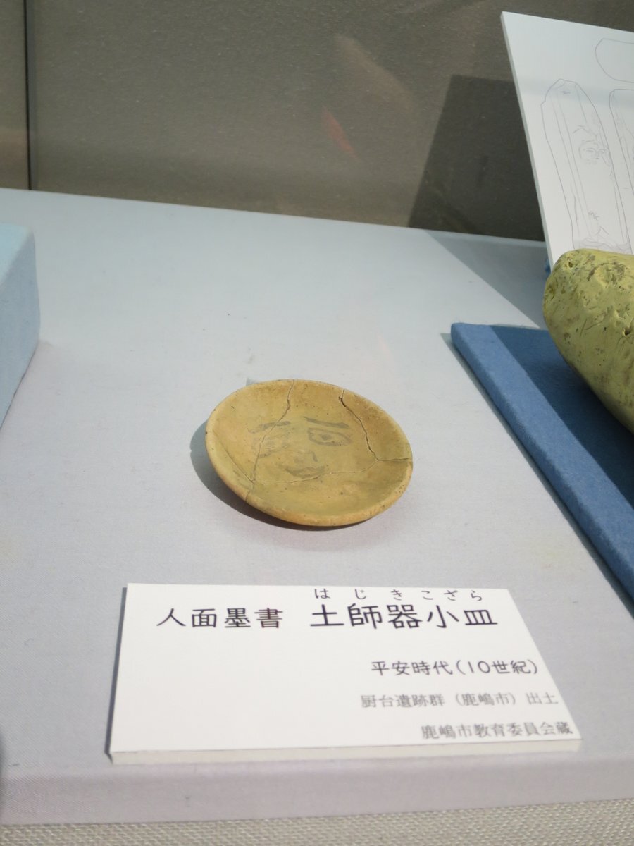 #上高津貝塚ふるさと歴史の広場 #職場体験 4】 #上高津貝塚 #企画展#イチ推し展示資料 は、#人面墨書土器 です。#奈良・平安時代 の土器で壺に人の顔が描かれています。罪や穢れなどを封じ込めて川などに流す儀礼に使われたとされています。笑っていたり無表情な様子が良いですね。#土浦 #文字 pic.x.com/FnVj5R5BGP