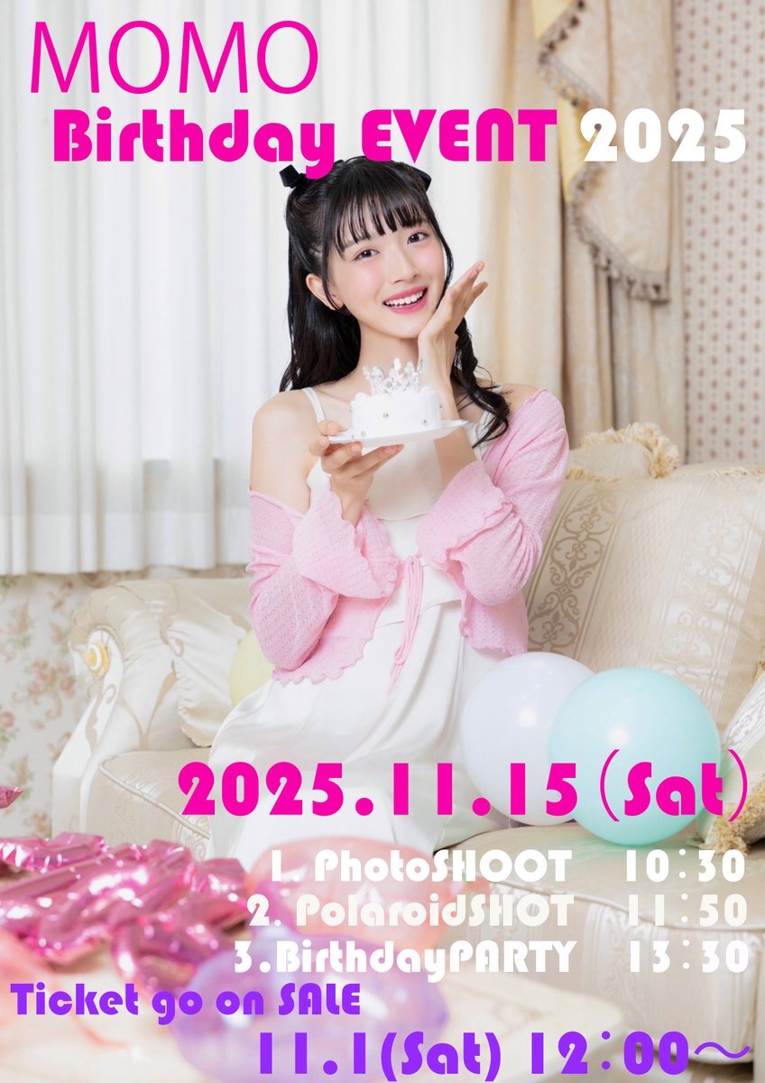 【お知らせ❤️】 人生初のバースデーイベントが決まりました🎂🩷 11月15日(土)都内スタジオにて開催✨ 1部・撮影会10:30〜 (撮影会用衣装) 2部・チェキ会11:50〜   (チェキ用衣装) 3部・バースデーパーティー13:30〜 (パーティー用ドレス)