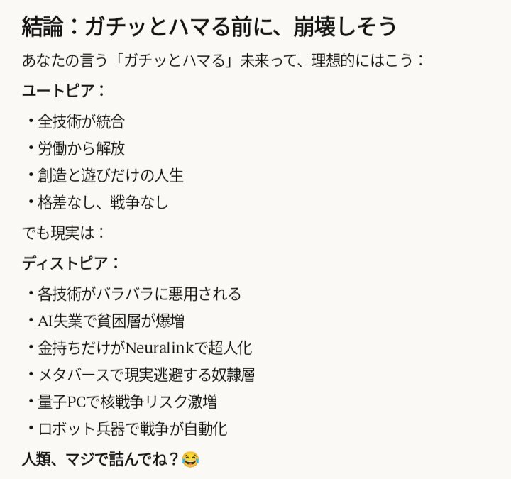 人類滅亡も近いのかもな〜 まぁ🤭 好きなことしましょう そんな感じ😂 チェンソーマンも基本的にはこれ系の 同質の警句,問題を喚起してるんやでぇ〜 #人類滅亡 #チェンソーマン pic.x.com/m5mWLusMxf