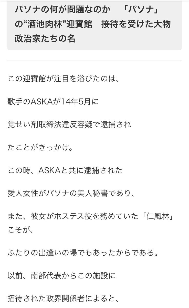 なんだ〜ASKAさんお得意様だったんですね👀 「ASKAと共に 覚せい剤取締法違反容疑で逮捕された 愛人女性もホステス役の一人で、 仁風林が出会いの場」 やっぱり仁風林からの 竹中平蔵からの 天膿肛室に繋がっちゃうのが マズイんでしょうね〜 #パソナ #仁風林 #春風林 x.com/wwg1wgaanais9/… pic.x.com/dnJdEqYFK5 x.com/wwg1wgaanais9/…
