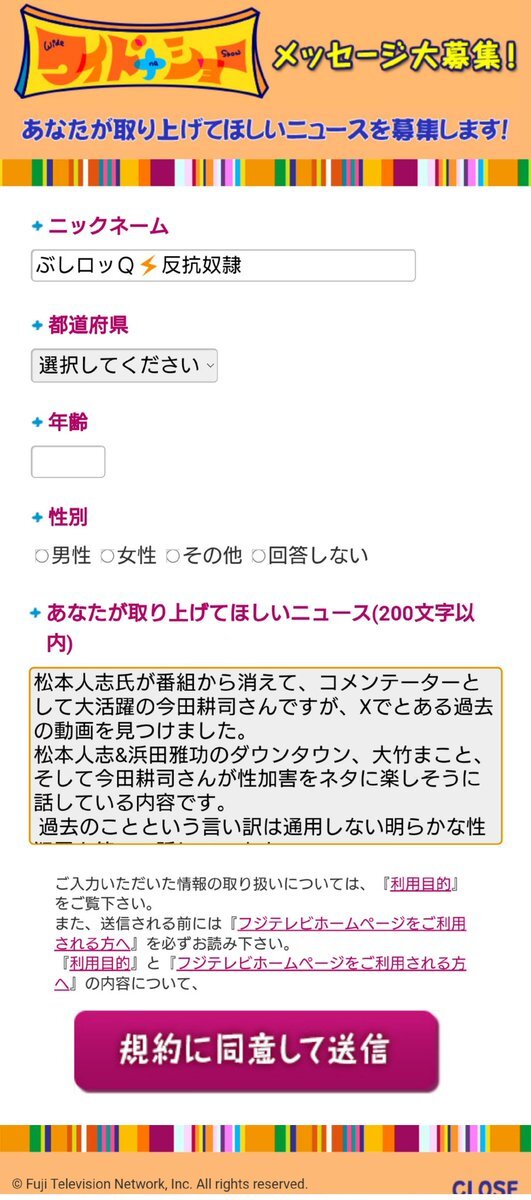 東野さんこんにちは。 𝕏にワイドナショー番組公式アカウントがなかったので、先んじて番組MCである東野さんのポストから引用失礼いたしまして動画を上げさせて頂きます。 この後番組ホームページに要望コメントさせて頂きます。 #ワイドナショー #今田耕司 #小児性犯罪 #業界の闇 #枕営業 #仁風林 pic.x.com/nocFKGyTtY x.com/Higashinodesu/…