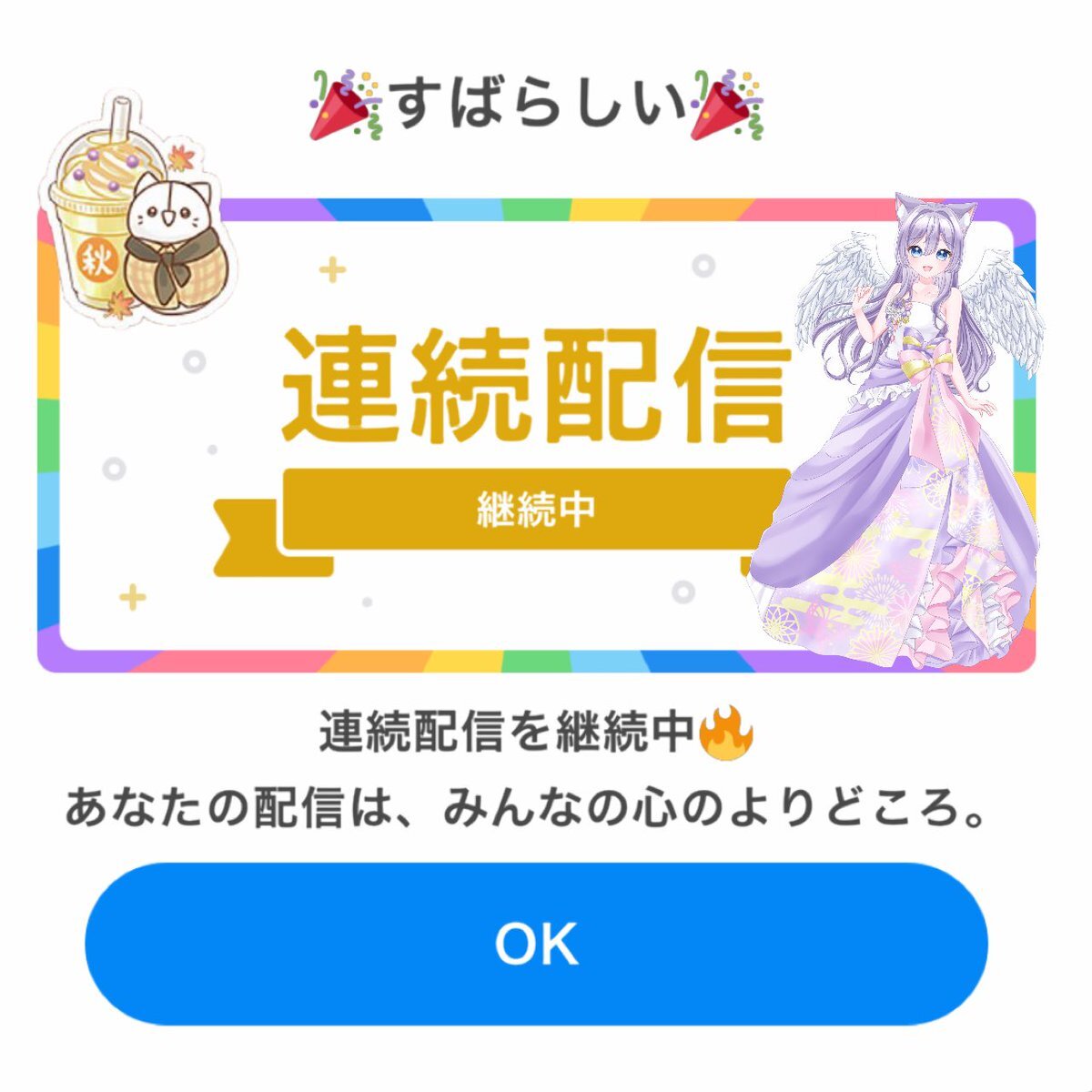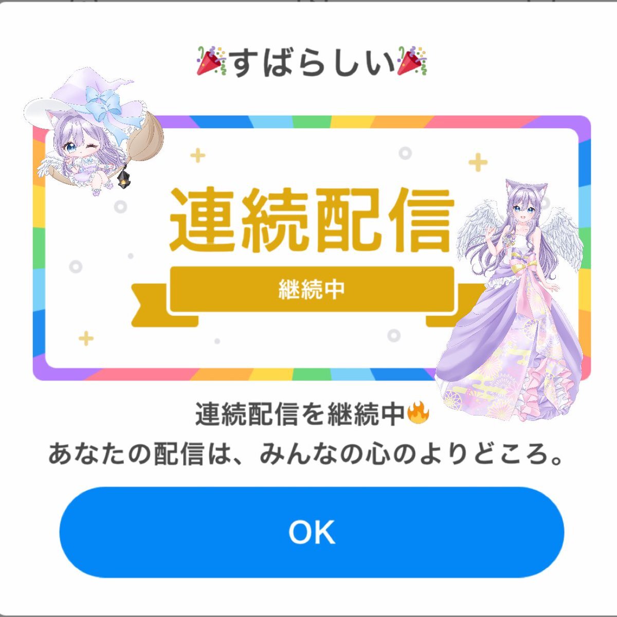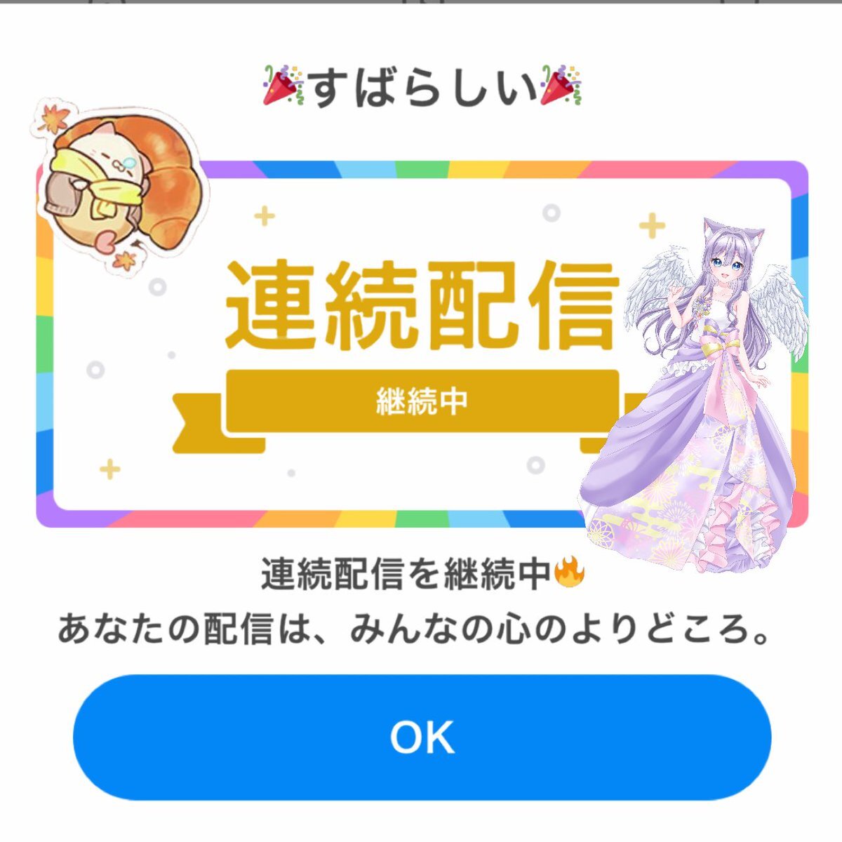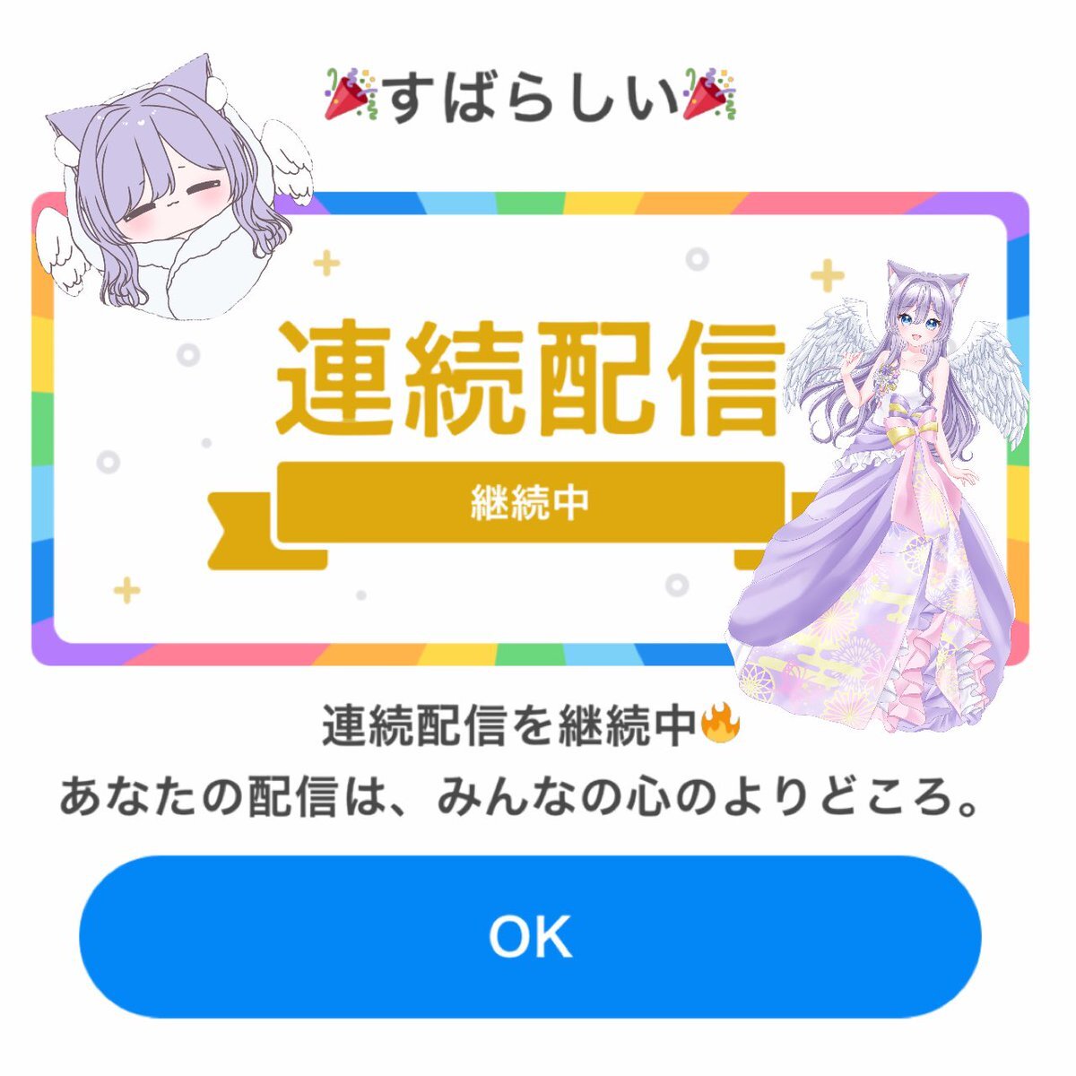 \配信来てくれてありがとう/ リザルト画面スクショ忘れてた🥲 連続配信継続だけは撮った← 19時過ぎから耐久あるよ!(٩`・ロ・´و)キテネ #IRIAMライバー個人勢 #猫耳天使 #今を大切に pic.x.com/cHabDiG2kw