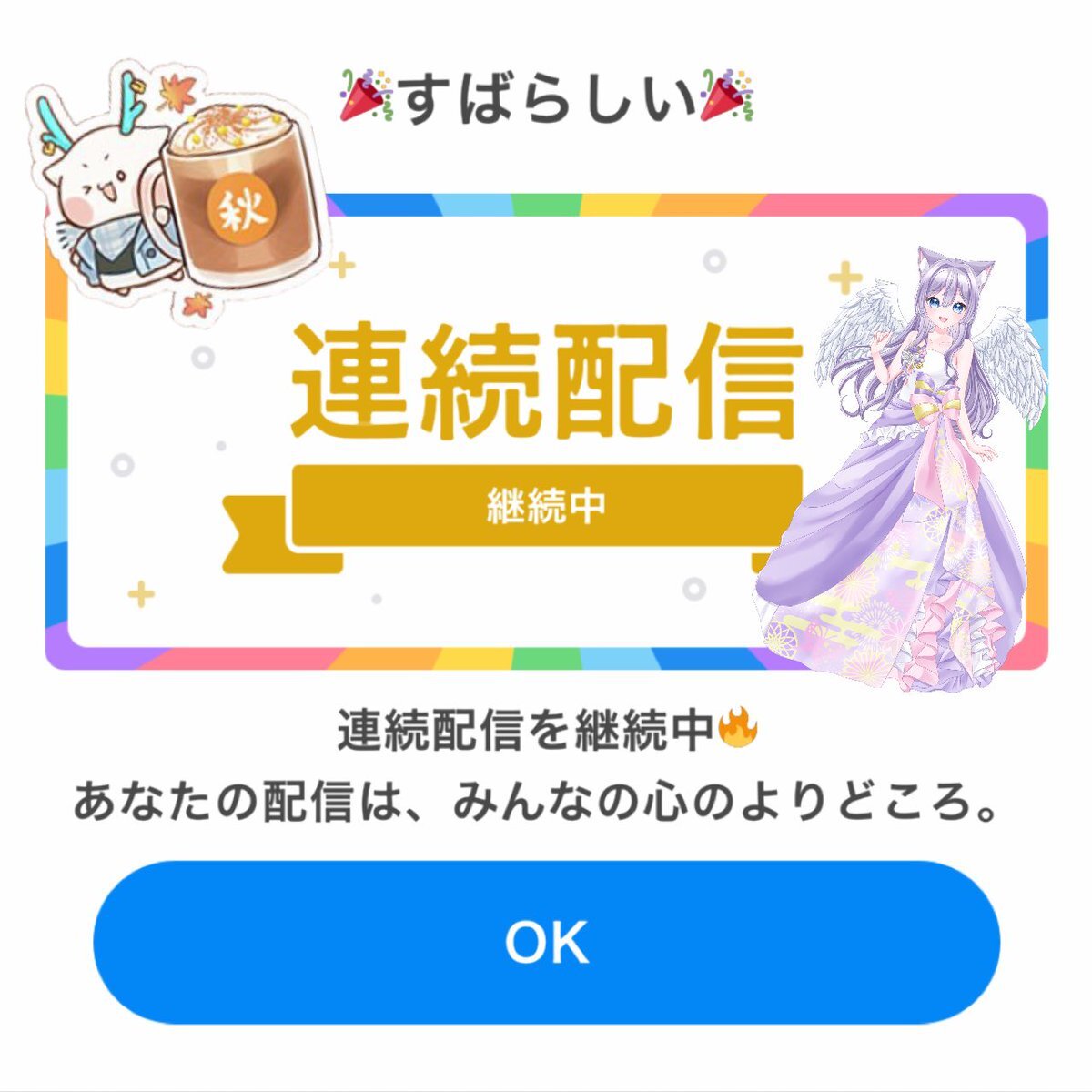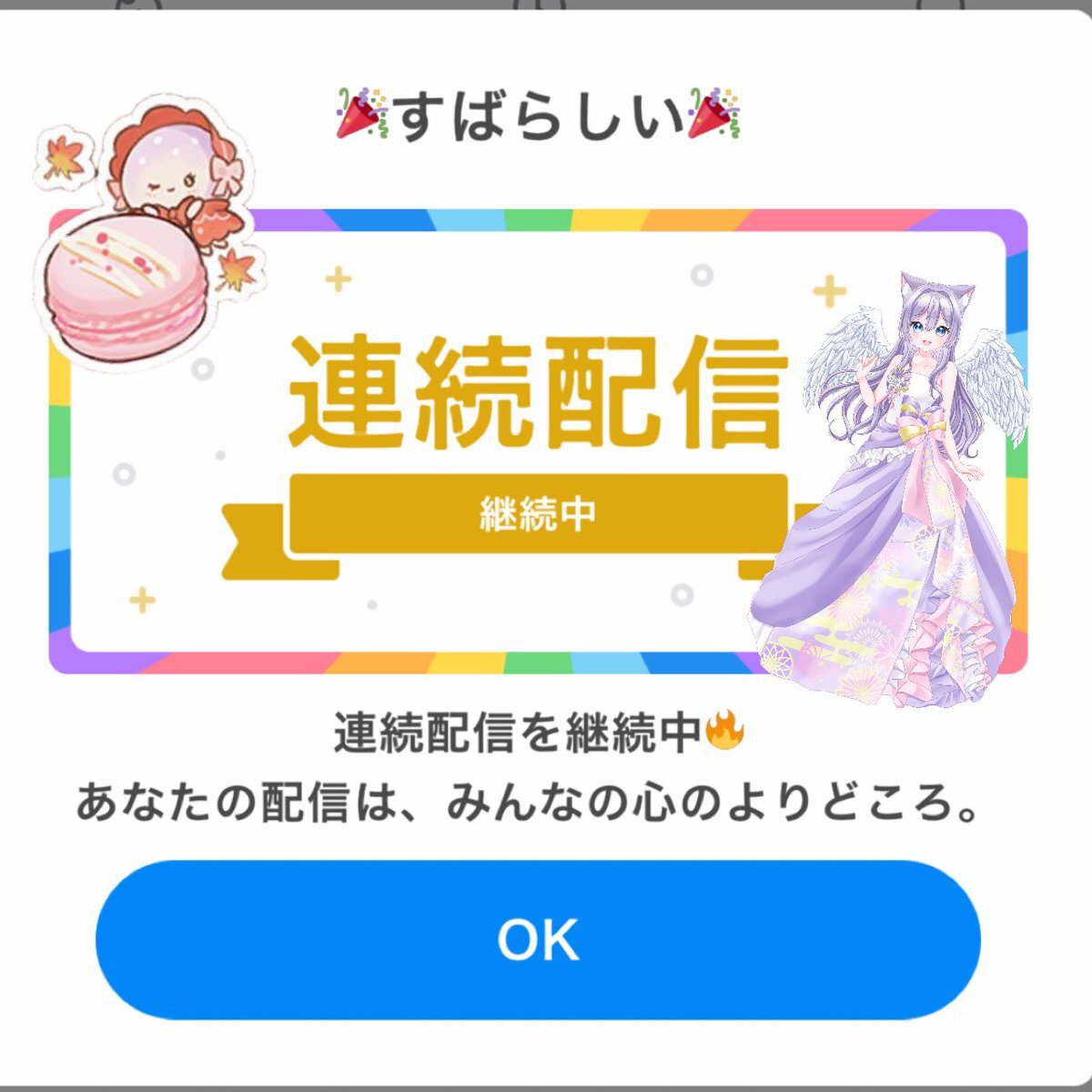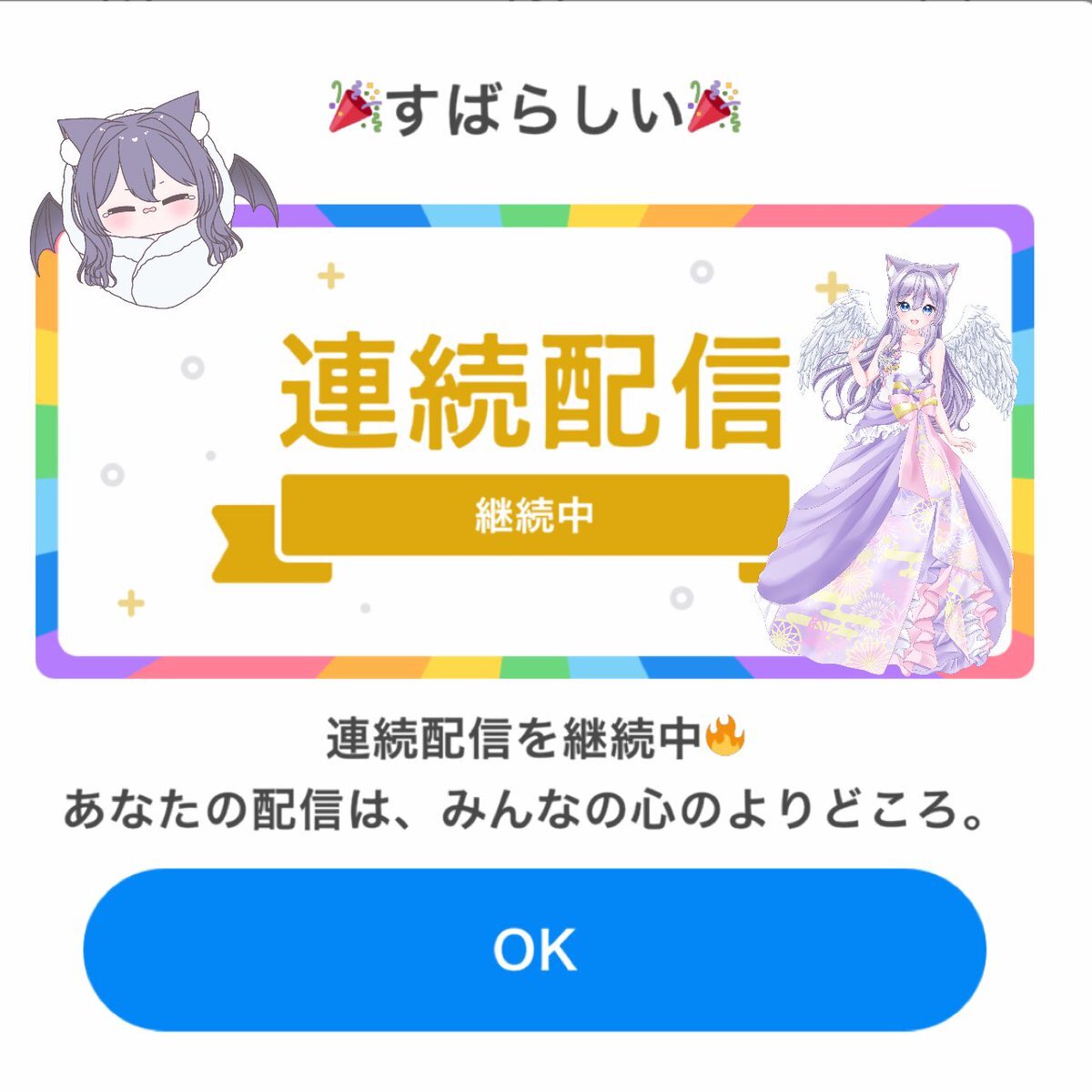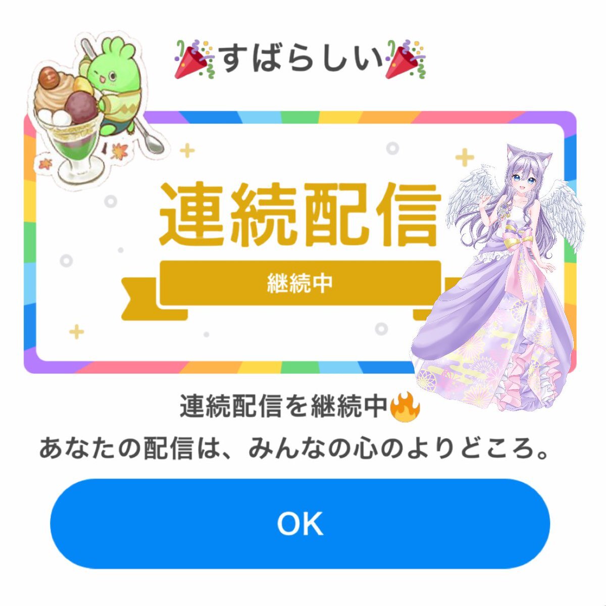 \配信来てくれてありがとう/ リザルト画面スクショ忘れてた🥲 連続配信継続だけは撮った← 19時過ぎから耐久あるよ!(٩`・ロ・´و)キテネ #IRIAMライバー個人勢 #猫耳天使 #今を大切に pic.x.com/cHabDiG2kw