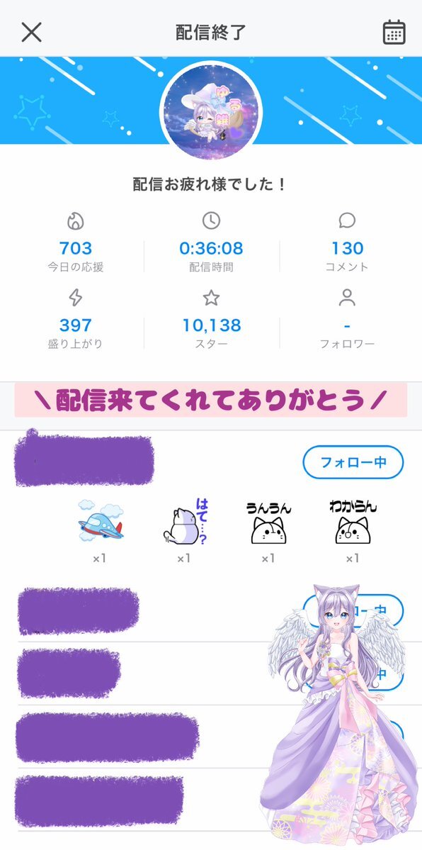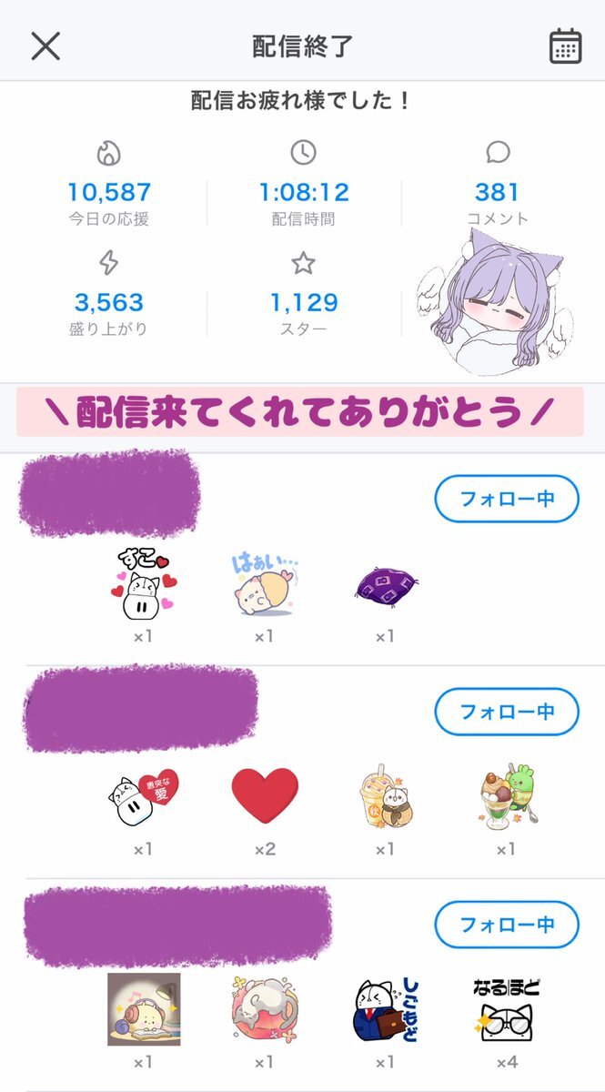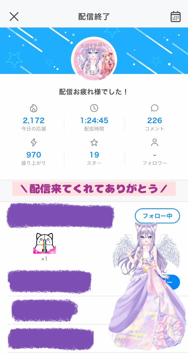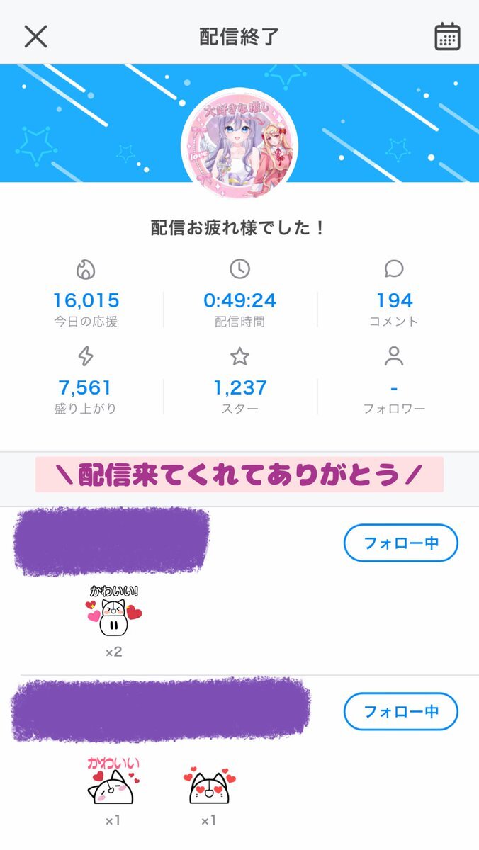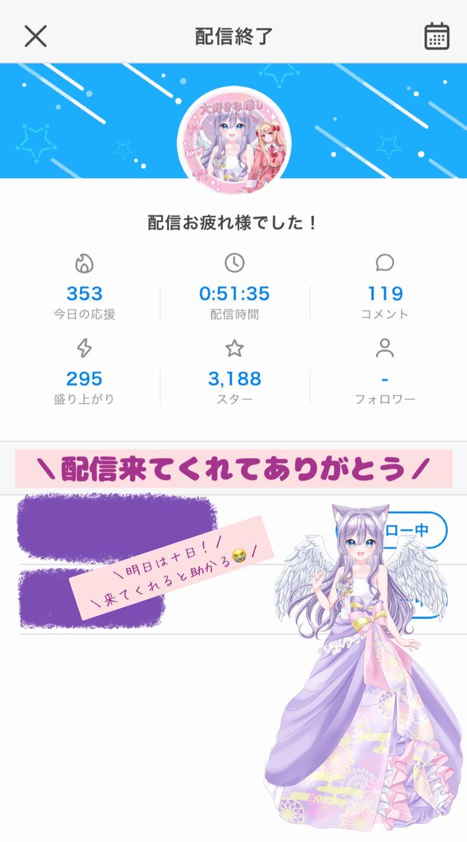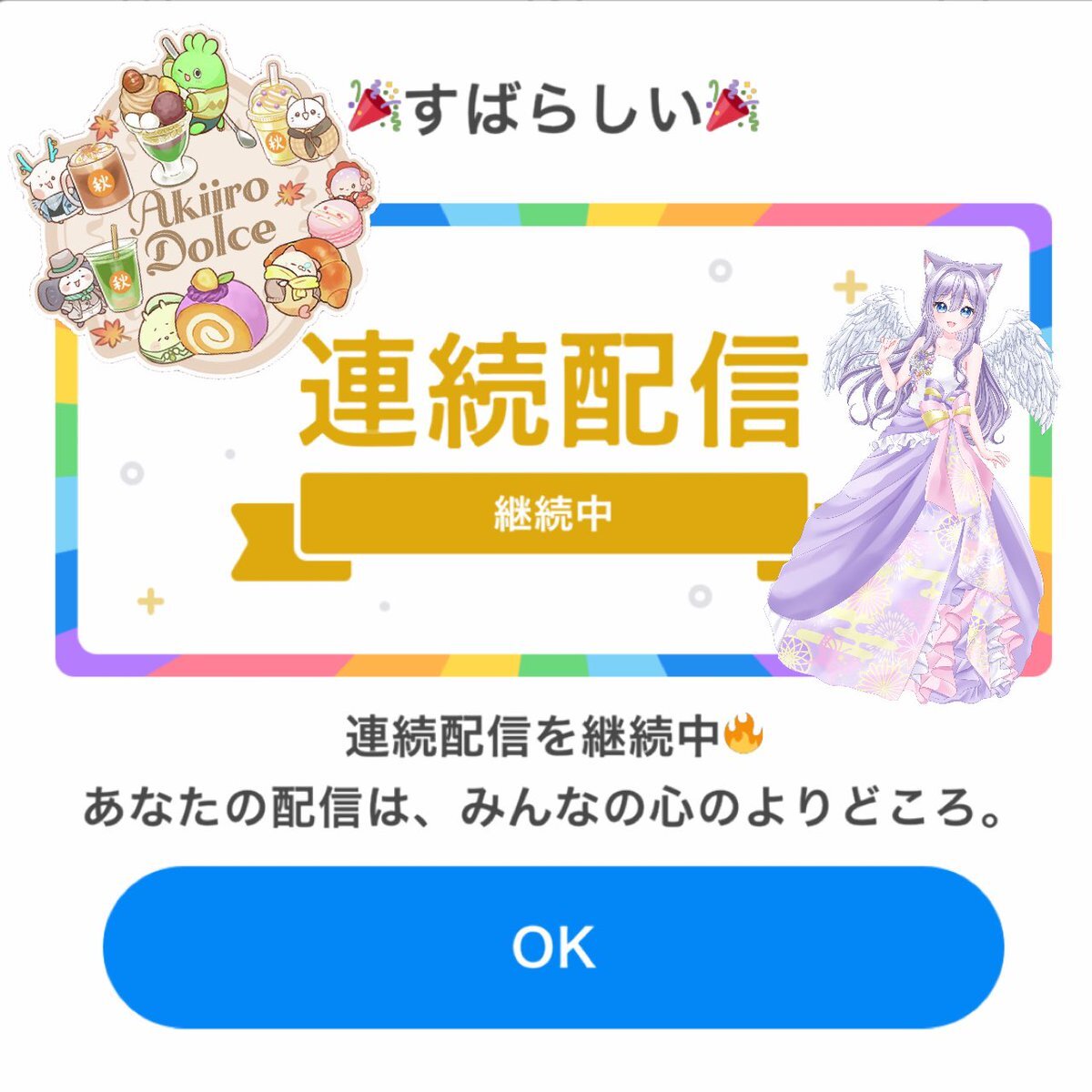 \配信来てくれてありがとう/ リザルト画面スクショ忘れてた🥲 連続配信継続だけは撮った← 19時過ぎから耐久あるよ!(٩`・ロ・´و)キテネ #IRIAMライバー個人勢 #猫耳天使 #今を大切に pic.x.com/cHabDiG2kw