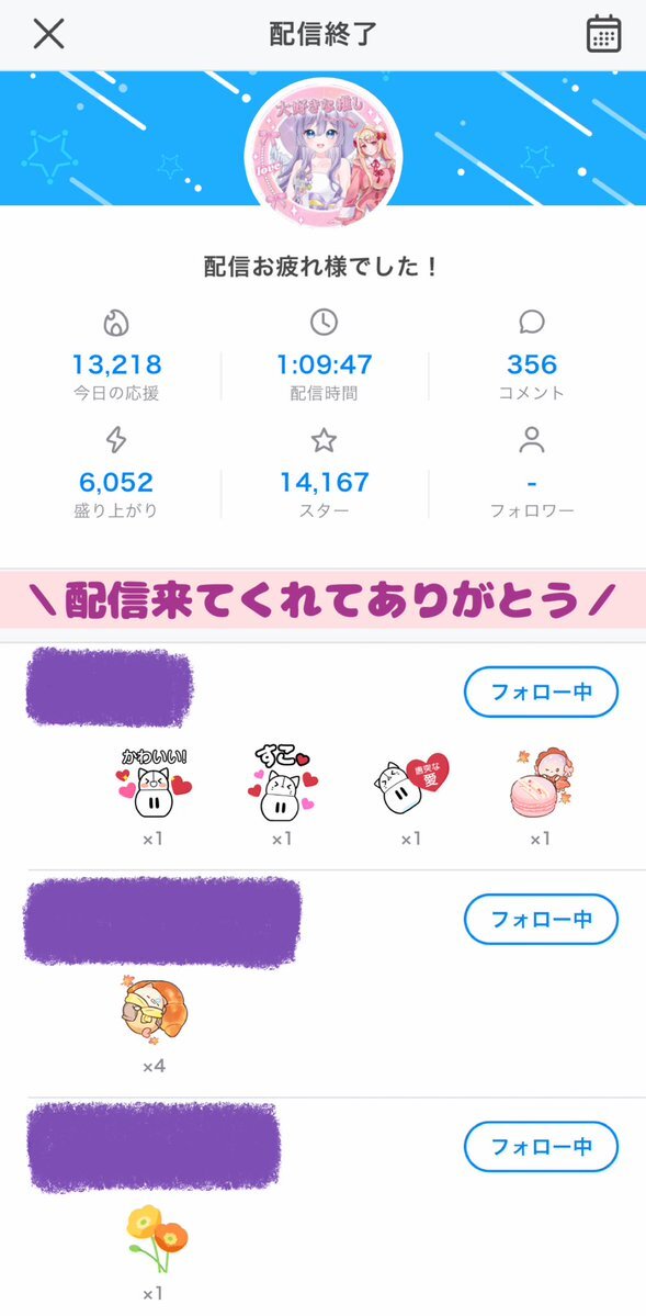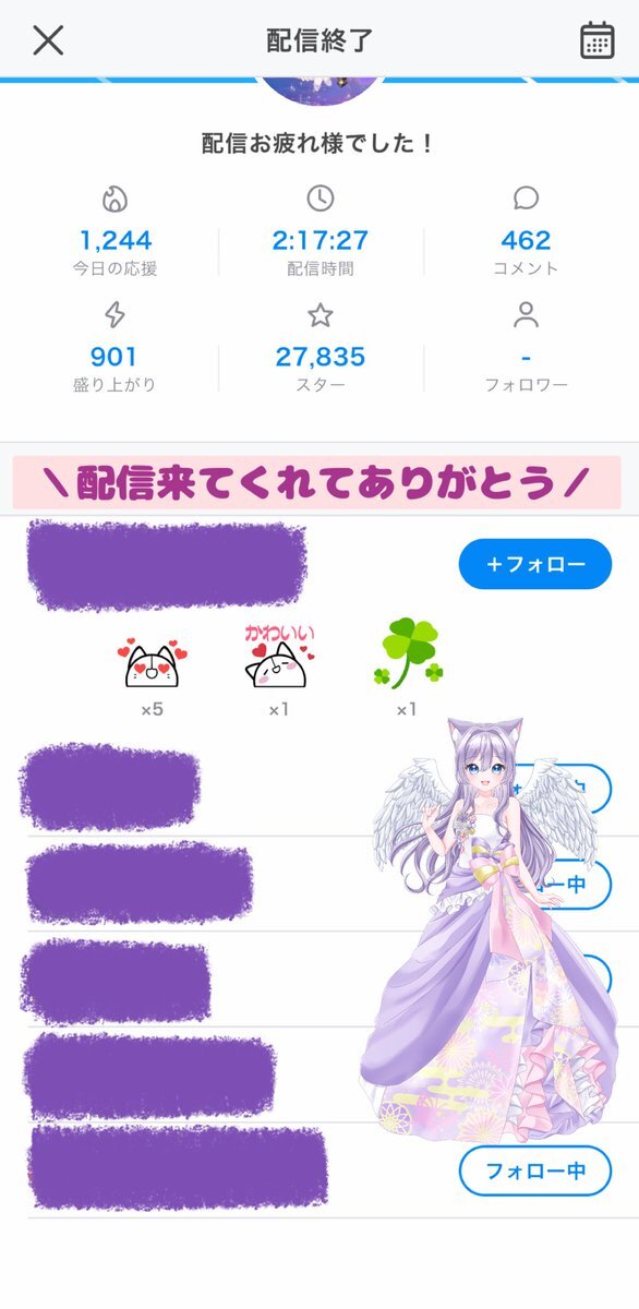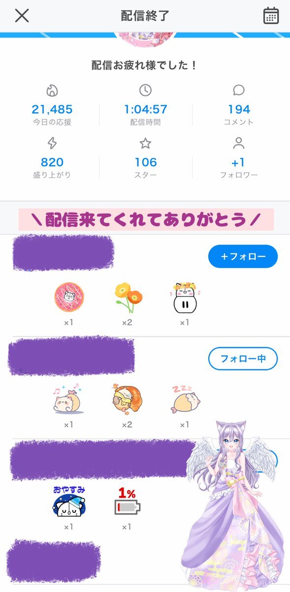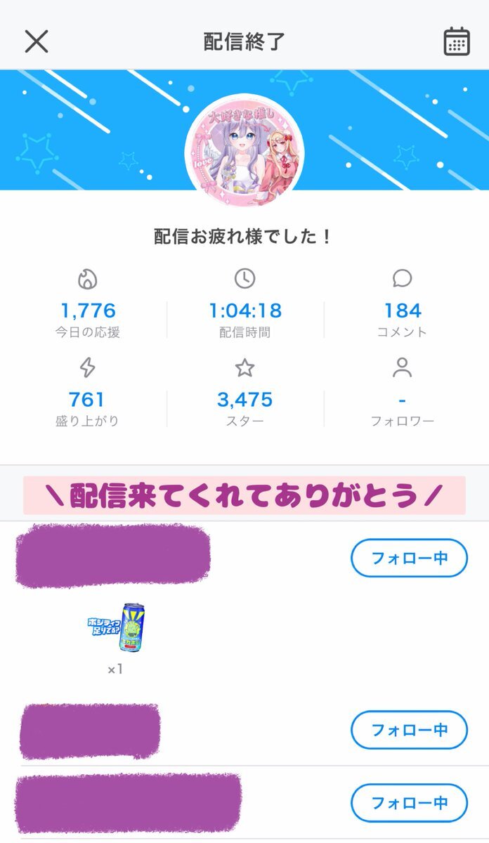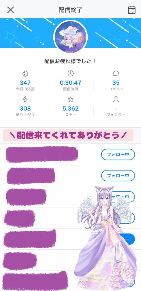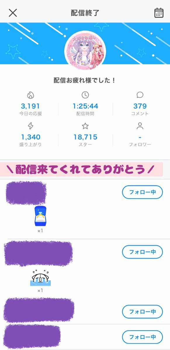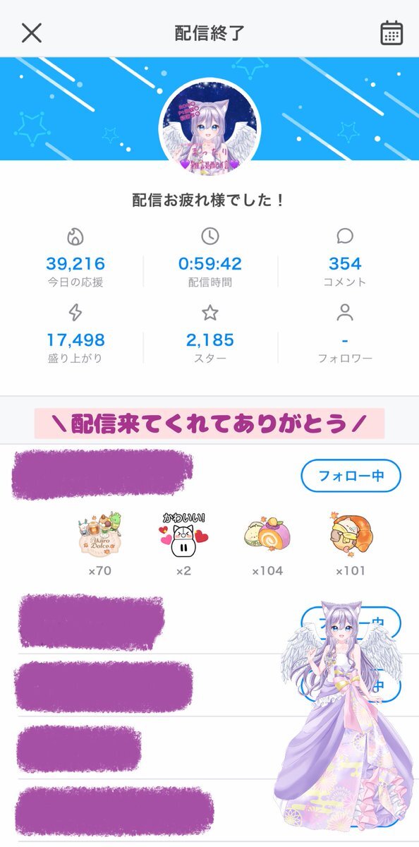 \配信来てくれてありがとう/ リザルト画面スクショ忘れてた🥲 連続配信継続だけは撮った← 19時過ぎから耐久あるよ!(٩`・ロ・´و)キテネ #IRIAMライバー個人勢 #猫耳天使 #今を大切に pic.x.com/cHabDiG2kw