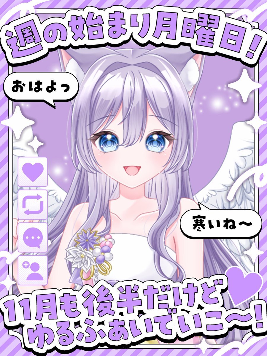 おはれにゃ💜🪽 今日は #あいさつの日 いつも思うけど本当に色々な日があるなぁ🤔 体調管理しっかりしてこ〜! あんスコ達成頑張るぞ(ง •̀_•́)ง #IRIAMライバー個人勢 #猫耳天使 #今を大切に pic.x.com/LSsrWpBcSV x.com/oo0u0po/status…