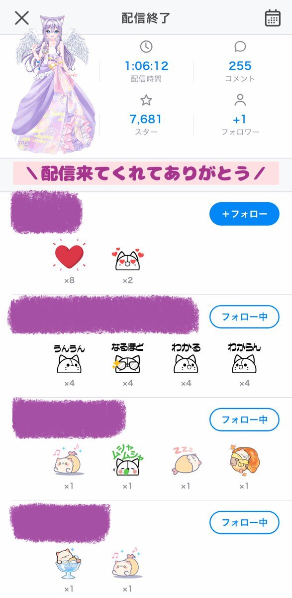 \配信来てくれてありがとう!/ いい推しの日に配信に推しが来てくれて めっちゃ嬉しい(੭ु。╹▿╹。)੭ु⁾⁾💕 皆も寝に来たり話してくれて ありがとうだよぅฅ^•ω•^ฅ スクショ逃しごめん。> <。 #IRIAMライバー個人勢 #猫耳天使 #今を大切に pic.x.com/L34p4H2fUl