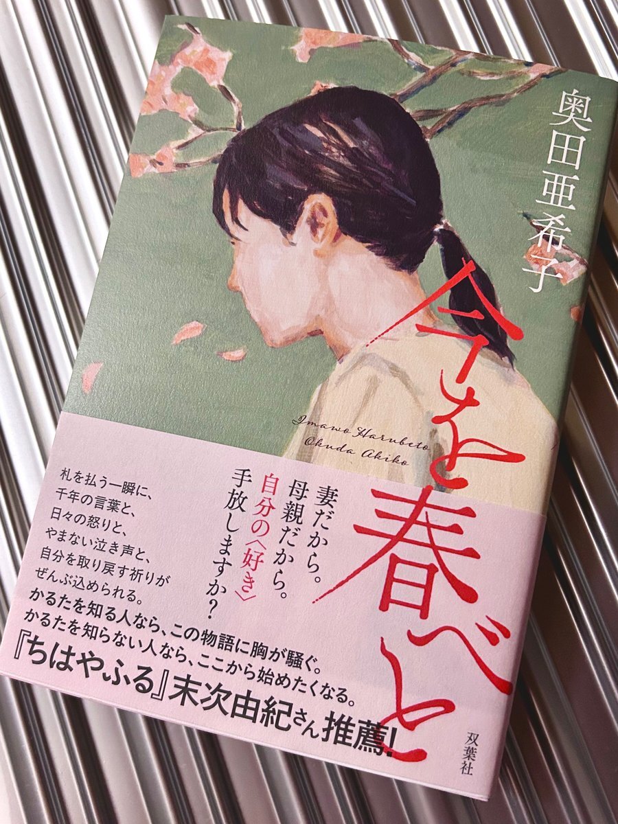 #奥田亜希子 さん『#今を春べと』発売です! 競技かるたを題材にしたスポーツ小説であり、夫婦小説そして母子小説でもある物語。40歳になる主人公が自分の〈好き〉を見つけ前進してゆく姿に思わずエールを送りたくなります✨『ちはやふる』末次由紀さん推薦コメント帯付き! colorful.futabanet.jp/list/trial/nov…