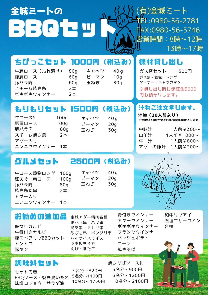 金城ミート、BBQセットやってます~♪沖縄ではこれからの季節がキャンプに最適…北部キャンプの際はぜひご利用ください。 #BBQ #肉屋 #やんばる #今帰仁 #アウトドア #ビーチパーティ pic.x.com/b5seGWBHLN