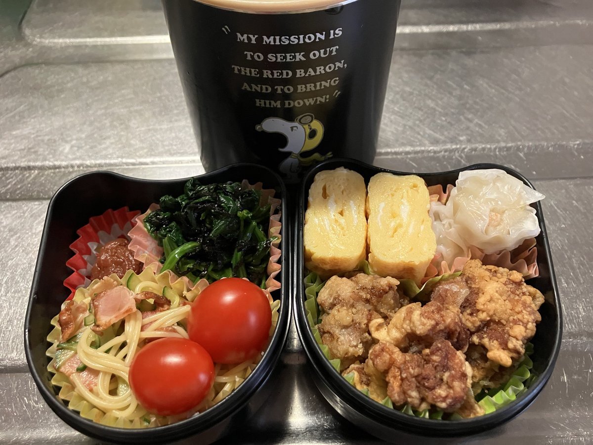 おはようございます☁️ 木曜日ですね 今週はいつもより長く感じます 疲れてるのかなー😅 土日の休みまで なんとか頑張るぞー😆👍 あっ 明日お弁当休みだー あっ 土曜日はお弁当ある🤣 #今日のお弁当 鶏唐揚げ たまご焼き エビシューマイ(冷食) スパサラ ほうれん草風味和え 梅干し pic.x.com/TEnRxncPOC