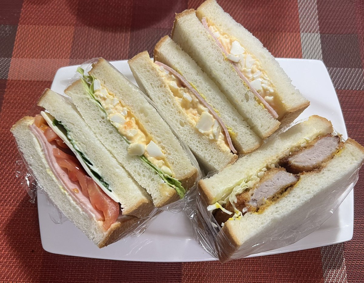 おはようございます どうやってお弁当に入れるか悩んでる図 #今日のお弁当 カツサンド、たまごサンド、チーズとボロニアソーセージのサンド #お弁当 #お弁当記録 pic.x.com/uGXjK1j4n0