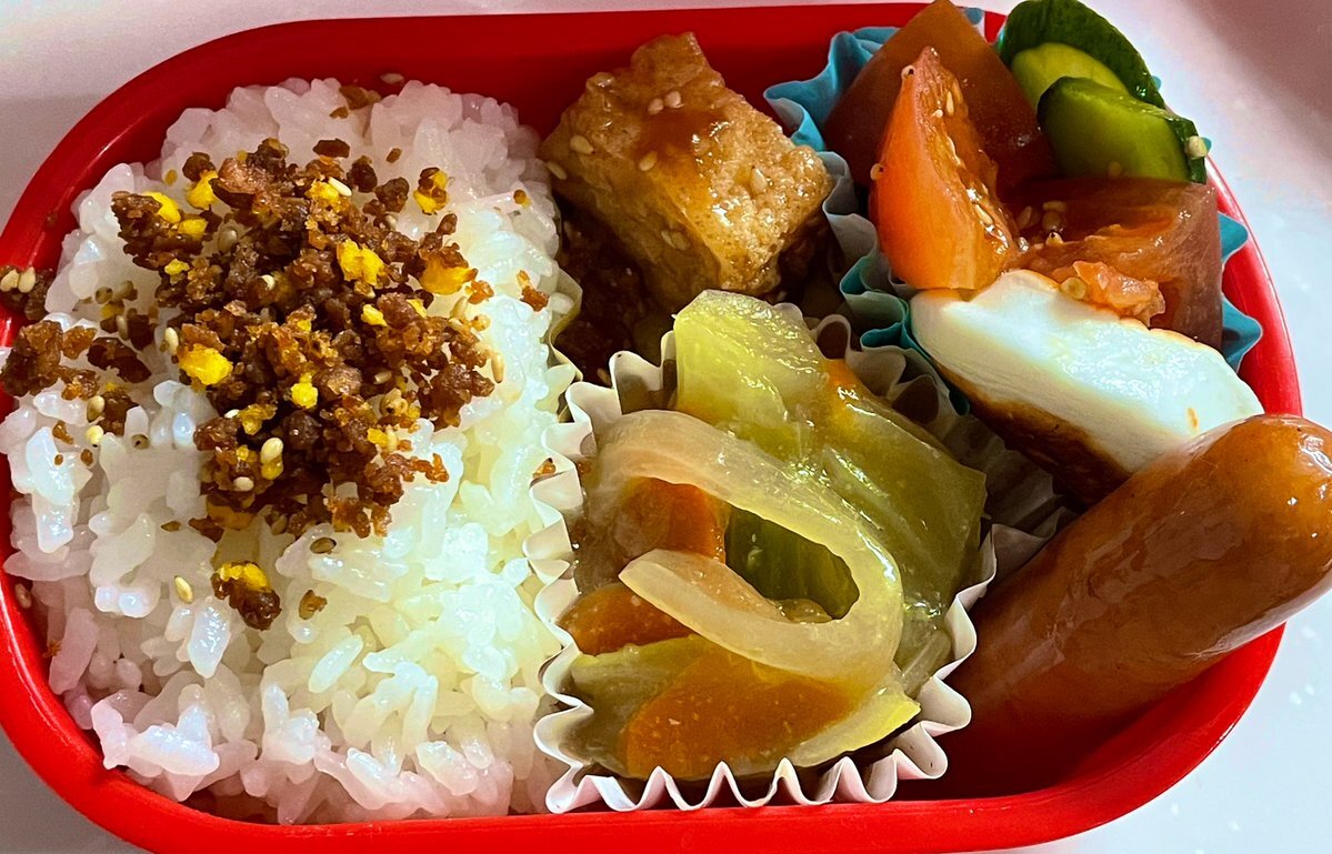#今日のお弁当 こんにちは(*˙︶˙*)ノ゙ 今日は曇り・・・☁️ でも元気に、あと半日頑張ってきます ٩( 'ω' )و 皆さんも、ケガ等にお気をつけください🙇♀️ pic.x.com/qJFWri2KHp