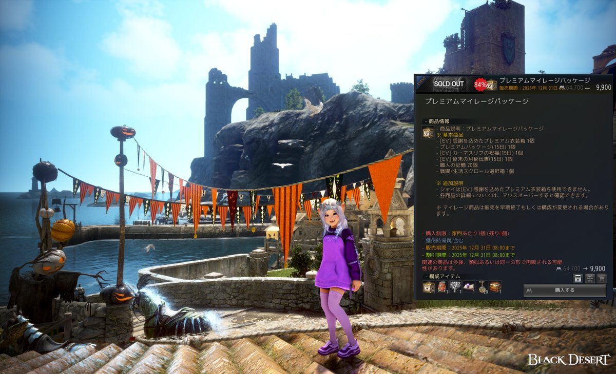 マイレージで買うプレパケ15日が年内お得ですね! さて、今日は海デイリー行って久々にマレッタ討伐して来ましたよ!眠いのでハコバンはまたサボりですw また明日ね! #黒い砂漠PC #今日のだっさん🌊🗽 pic.x.com/h5umPbwhnM