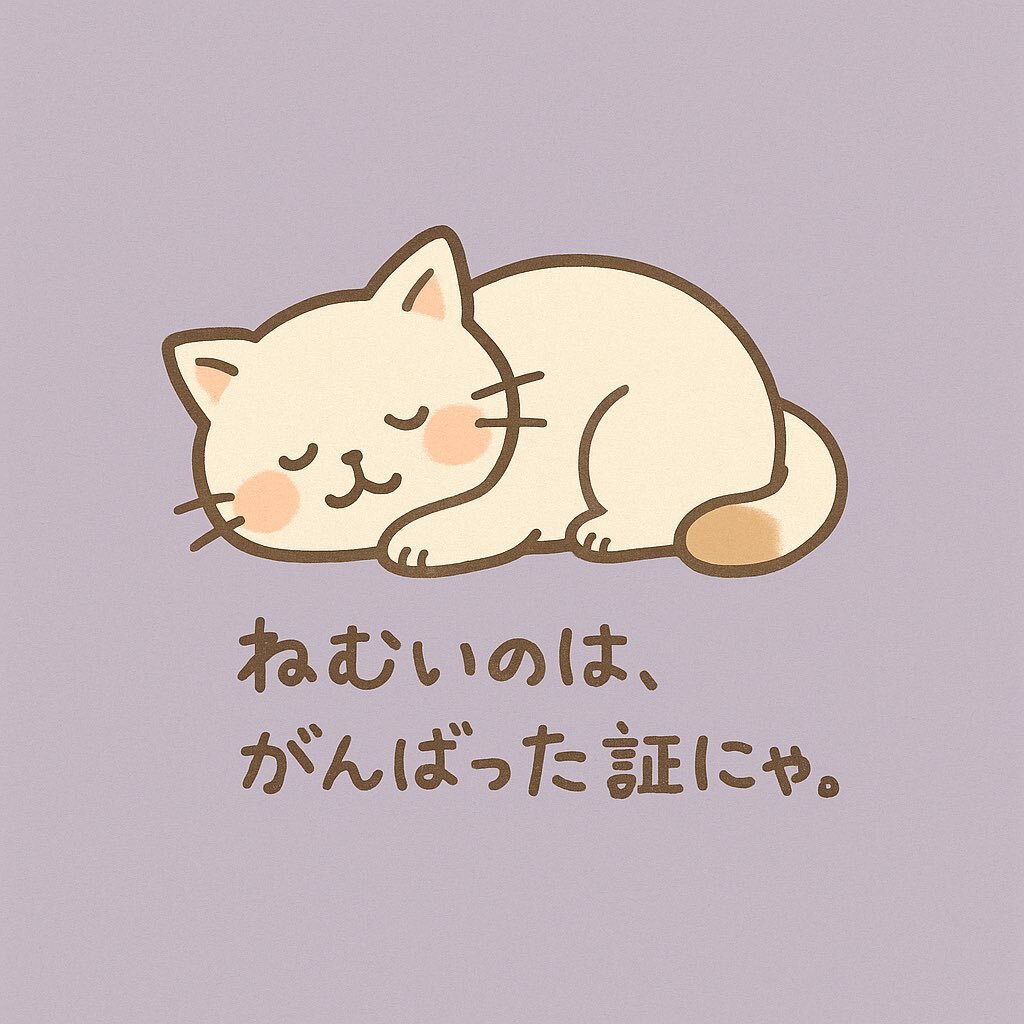 ねむいのは、がんばった証。 ちゃんと動いて、考えて、 ここまできたから、ねむいんだよ。 #今日のだらにゃ #だらにゃ語録 #脱力系ねこ pic.x.com/PybYCZBptQ