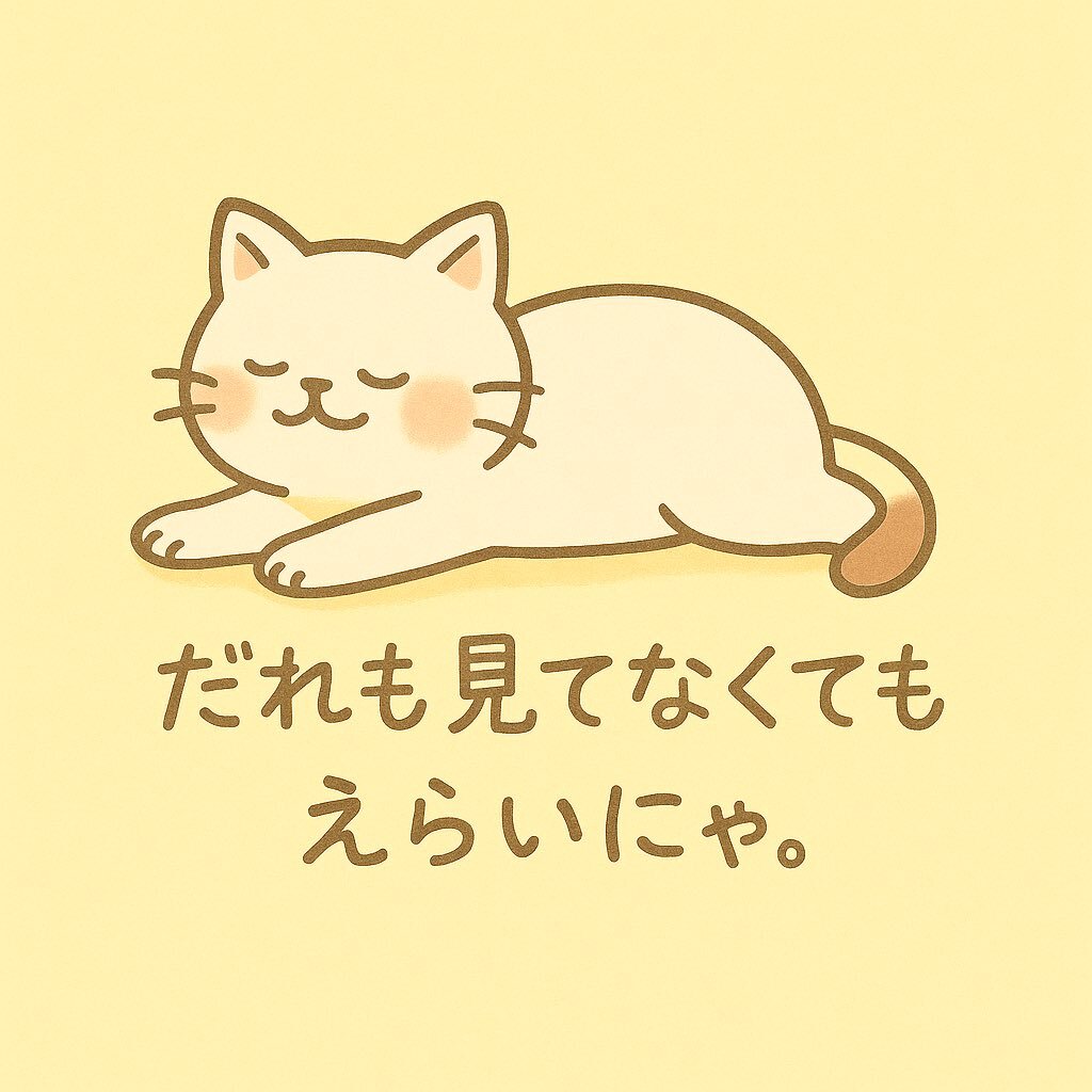 誰も見てなくても、えらいよ。 今日を過ごしただけで、 ちゃんとすごいこと。 #だらにゃ語録 #脱力系ねこ #今日のだらにゃ pic.x.com/gK4QddHk8t