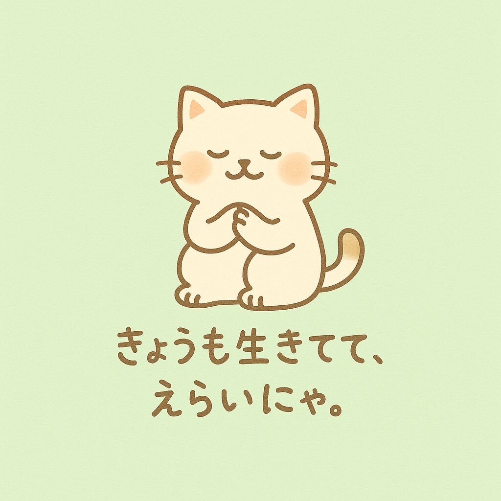 今日も生きてて、えらい。 がんばらなくても、 ちゃんと生きてるだけで十分だよ。 #今日のだらにゃ #だらにゃ語録 #脱力系ねこ pic.x.com/67LVjp2Fun