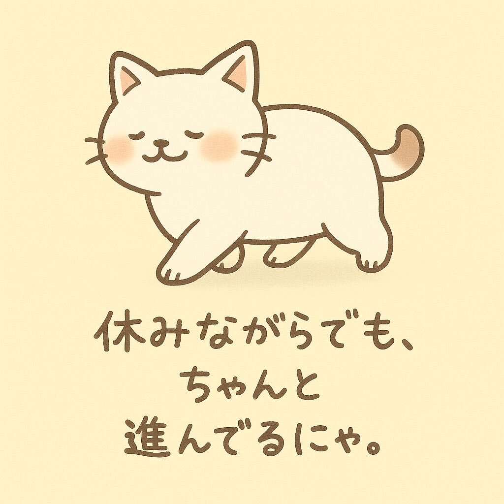 休みながらでも、ちゃんと進んでる。 止まってるように見えても、 心の中では動いてるんだよ。 #今日のだらにゃ #だらにゃ語録 #脱力系ねこ pic.x.com/HYa0KPJtMU