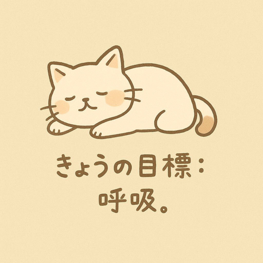 今日の目標。呼吸。 それだけできたら、じゅうぶんえらい。 #今日のだらにゃ #だらにゃ語録 #脱力系ねこ pic.x.com/70rNFBin2b