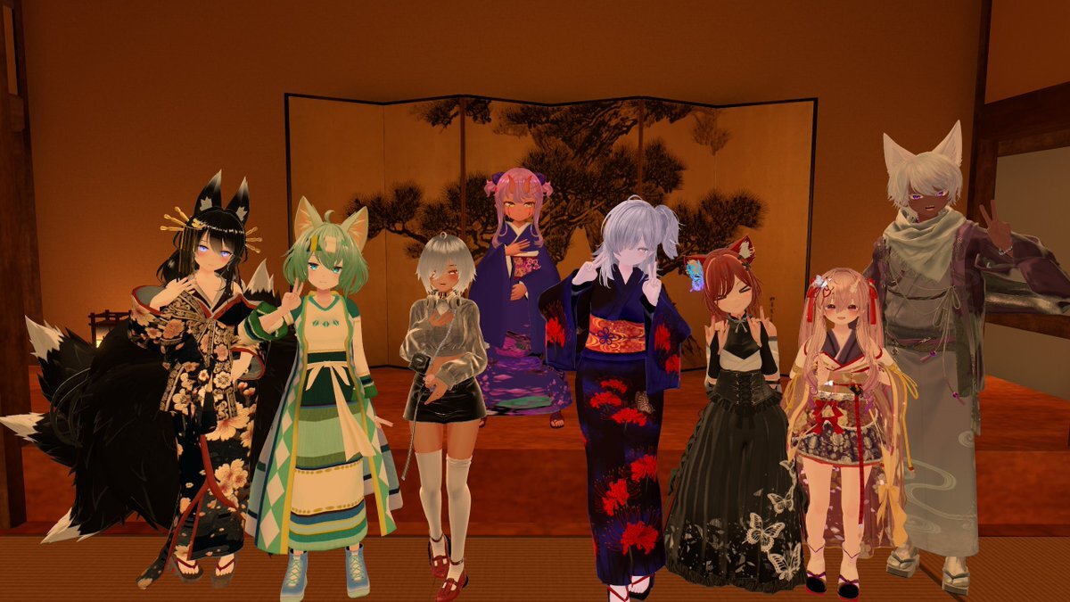 集合写真! ちゅべさん、リンさん、ヒュウさん、エクゼさん、白ちゃん、Nemoちゃん、お嬢! 今日も楽しかったです!ありがとうございました! その後いつもの場所でチル?な様子のおかしいちゅべファン! #今日のちゅべファン pic.x.com/EbBdKQySEX