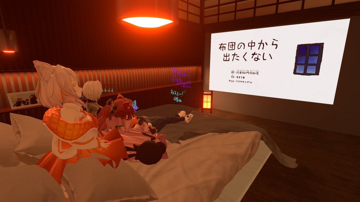 今日も様子のおかしい組はお布団の上でチル♪ 打首獄門同好会さんの「布団の中から出たくない」(youtube.com/watch?v=s4DxPe…)が面白かったw そしてういかお嬢の太もも絞めをくらうNemoちゃん #今日のちゅべファン pic.x.com/XfZ4eym41c