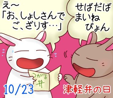 え~「あ、りがとう、、ございます…」「それじゃあダメだよね」"Thank you" "That won't do"#10月23日 #今日は何の日 #今日のひとこと #ひまうさぎ #うさぎ #津軽弁の日 #化学の日 #Tsugarudialect #chemistry pic.x.com/fI44J7PTHu