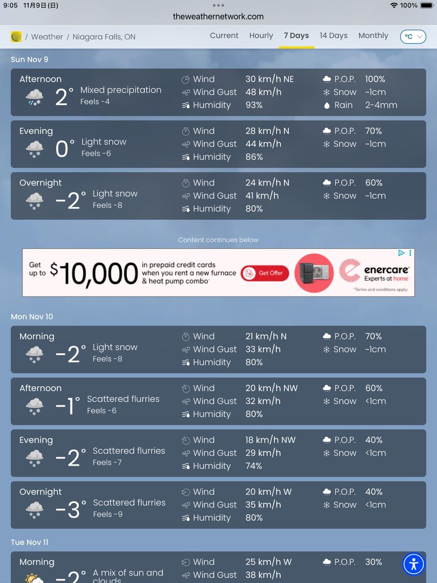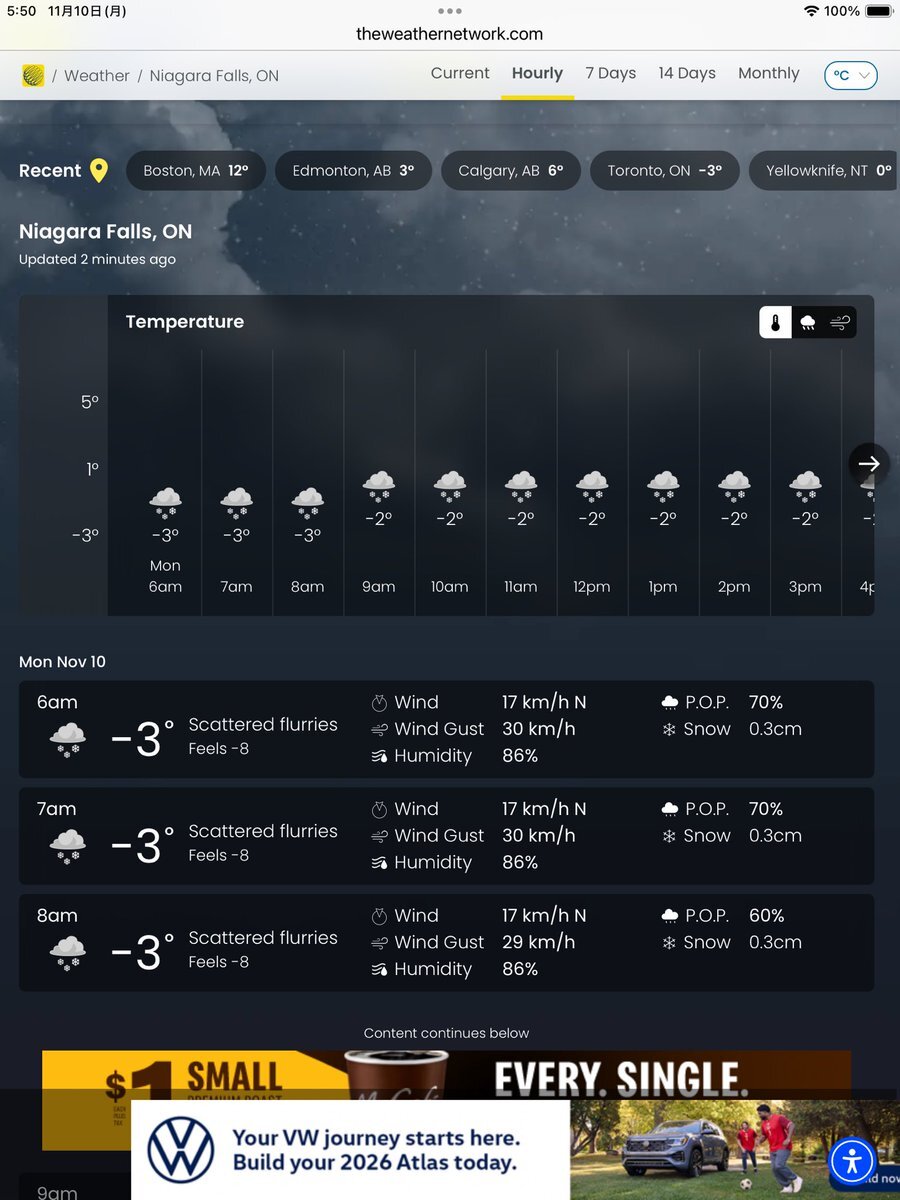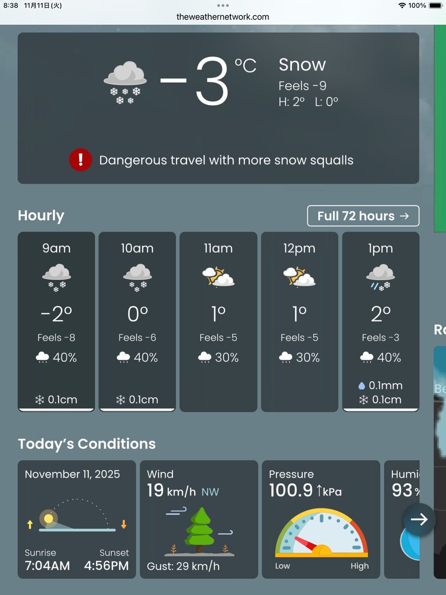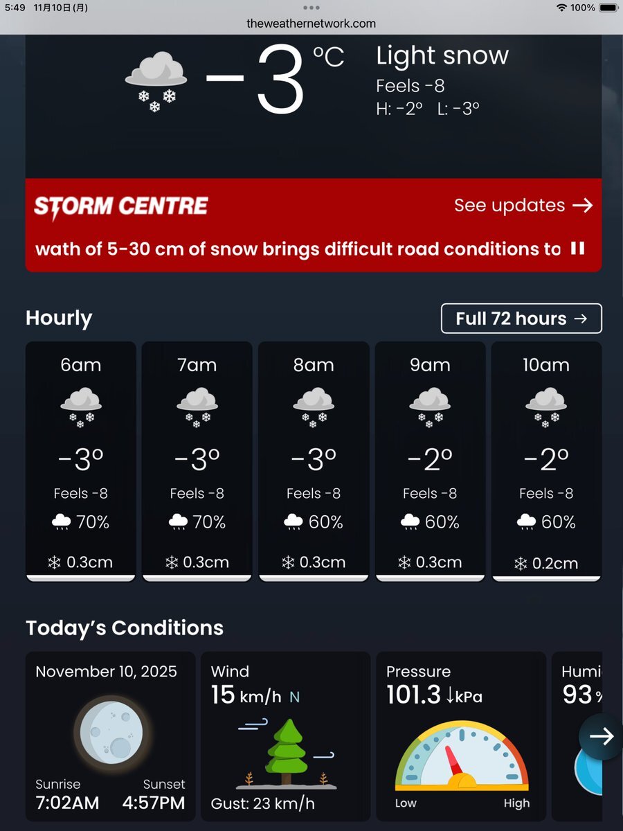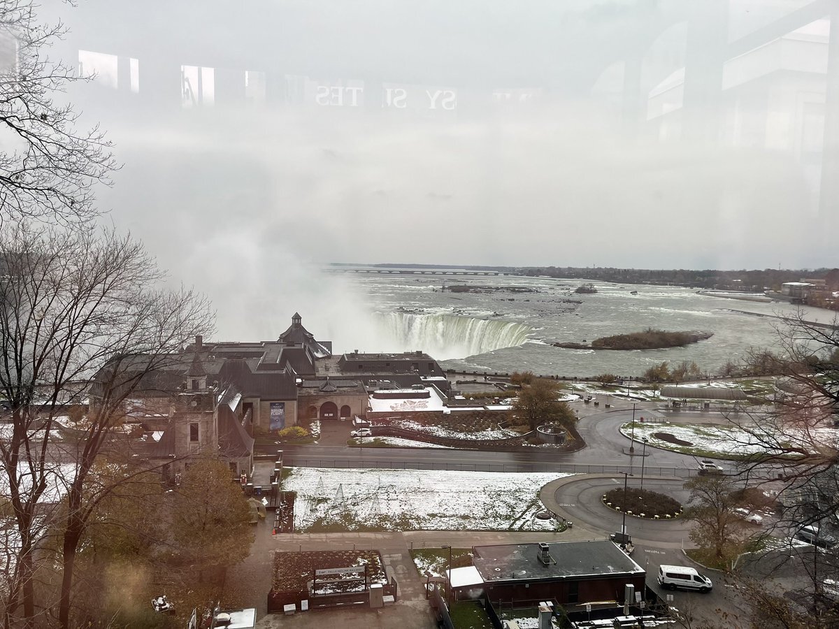 #今日のナイアガラ 雪の朝。…と言うか一日中雪の予報じゃないですか😨 ナイアガラの今の気温マイナス3℃、オーロラで有名な北の街イエローナイフ(0℃)より寒いって、どーいうことですか⁉︎ #初雪 #ナイアガラの滝より pic.x.com/pVKbLgP35w