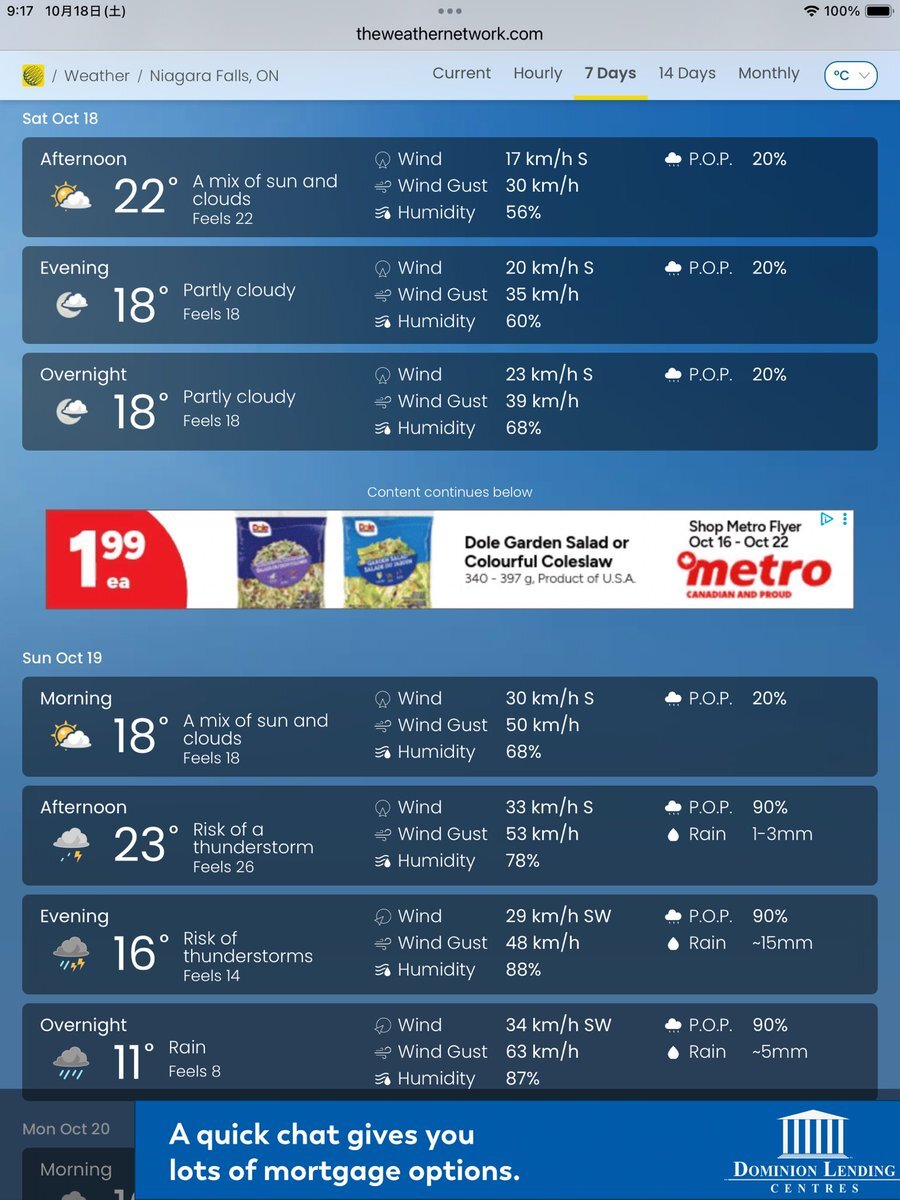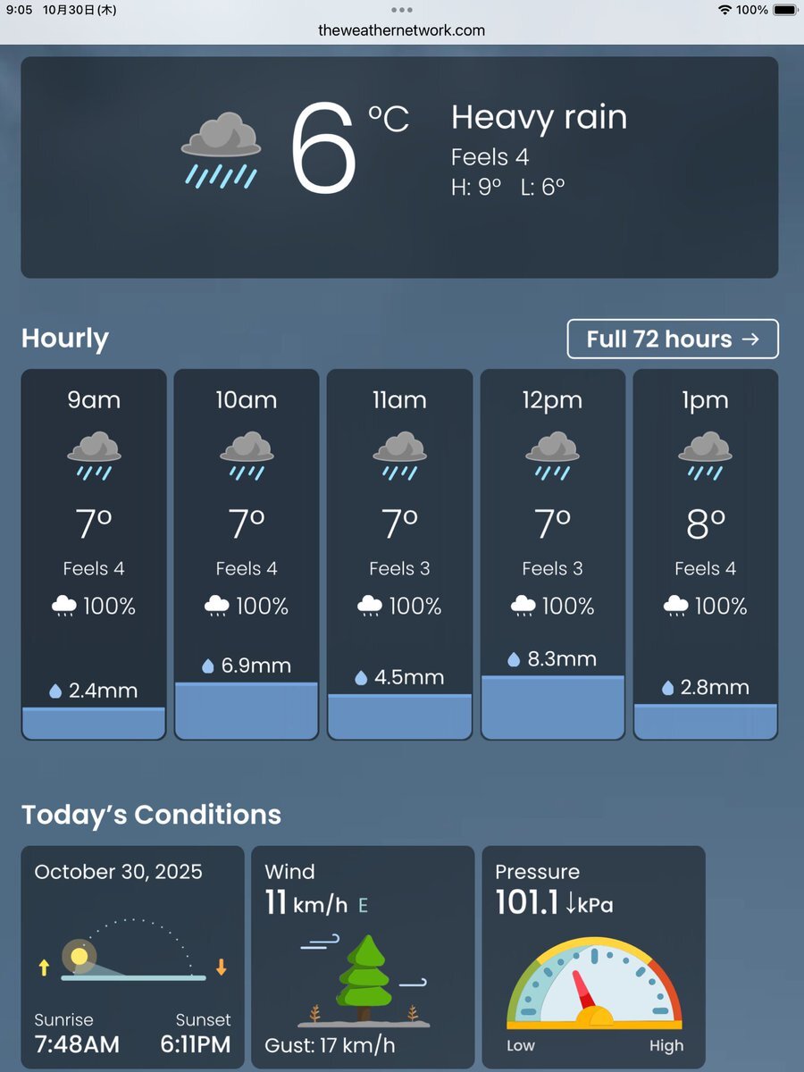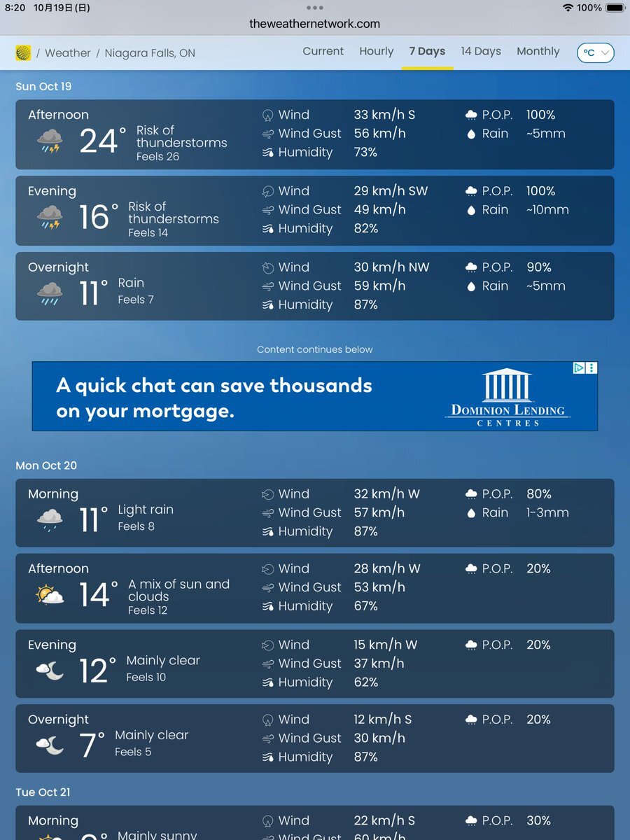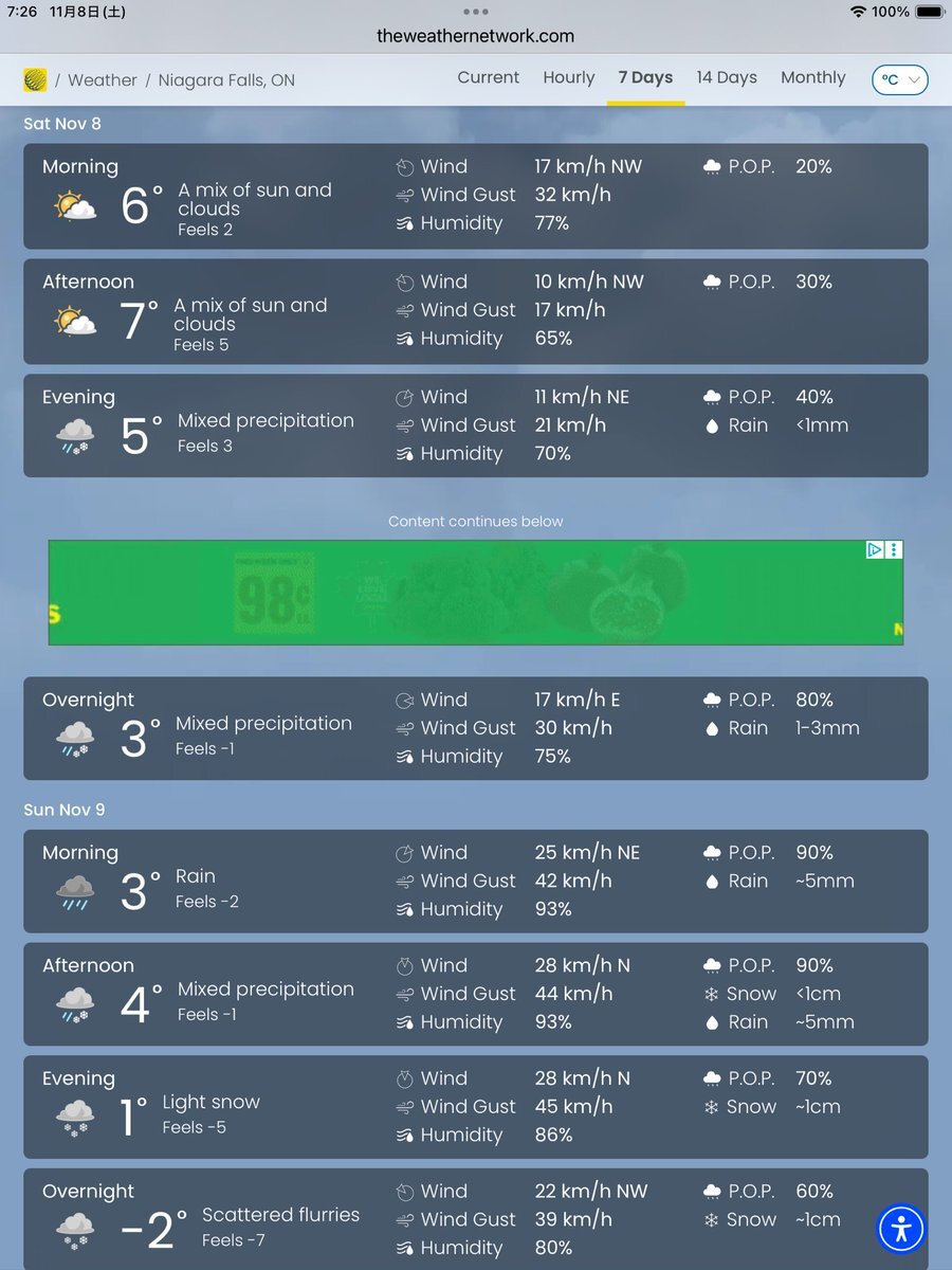 #今日のナイアガラ 今日も午後からツアーですが、午後から雨です。降水確率100%😭 前回のようにタイミングよく雨を避けてご案内できると良いのですが。 #ナイアガラの滝より pic.x.com/7z7PFZF1xR