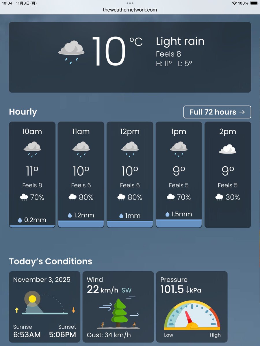 #今日のナイアガラ #夏時間終了 今朝は1時間余分に朝寝しました。今日から日本との時差14時間です。ワールドシリーズ、ブルージェイズが勝てなかったのは残念ですが、大谷選手がイマイチだったのも残念に思いました。でも山本選手の活躍が嬉しいです。 #ナイアガラの滝より pic.x.com/CLVb5hLfle