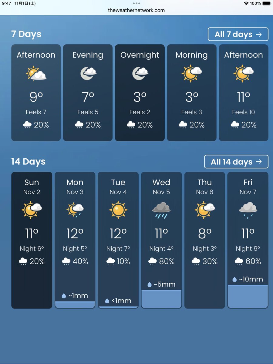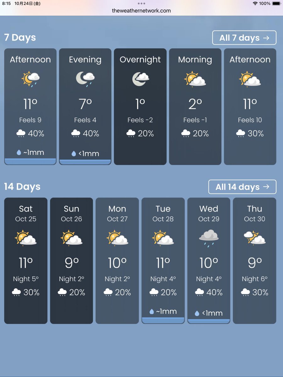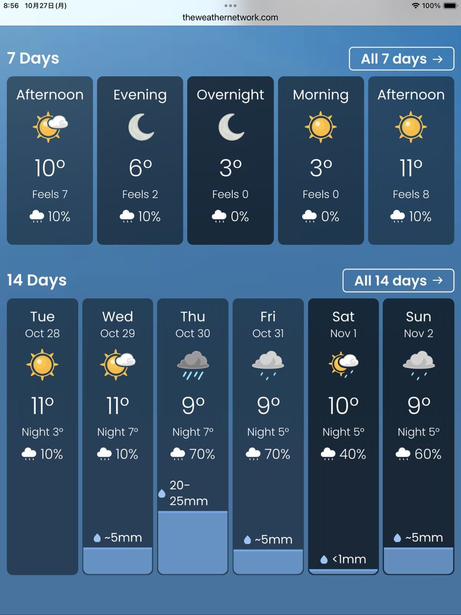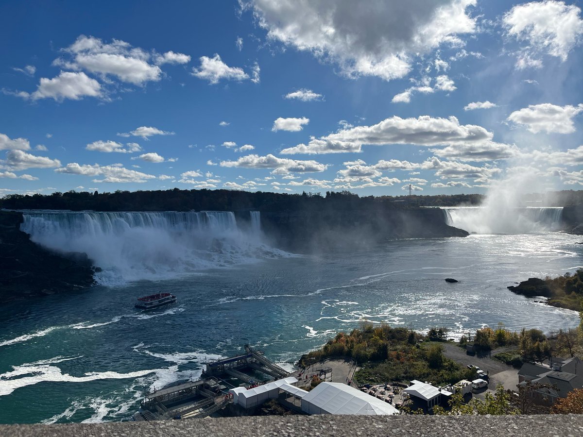 #今日のナイアガラ 今朝も冷えてますが、今のところお天気良好。でも明日明後日雨になりそうな😭 連日だった午後からツアー、ガイドの夕食はロブスター🦞プライムリブ🥩交互に出していただいていましたが、最終日の明日はどちらになるか… #ナイアガラの滝より pic.x.com/j8VysYPSUc