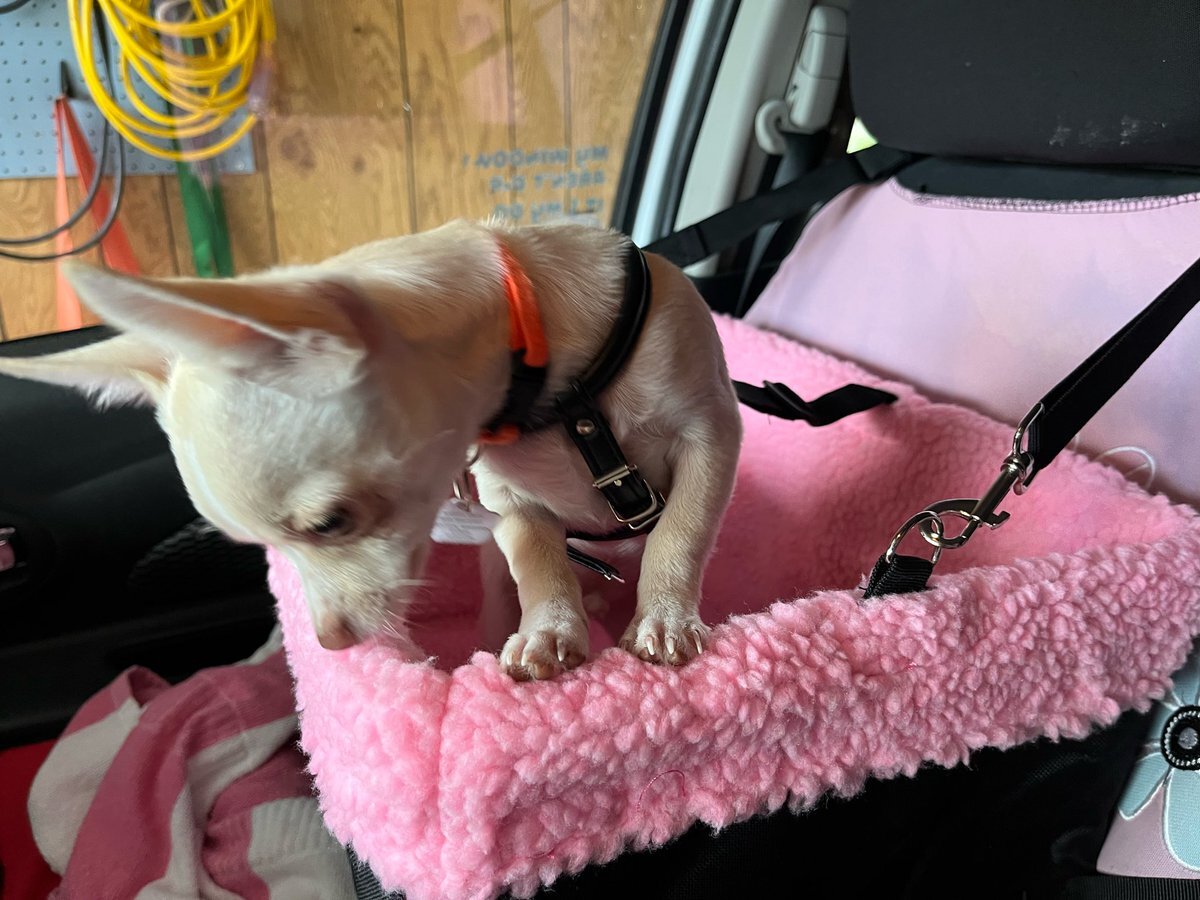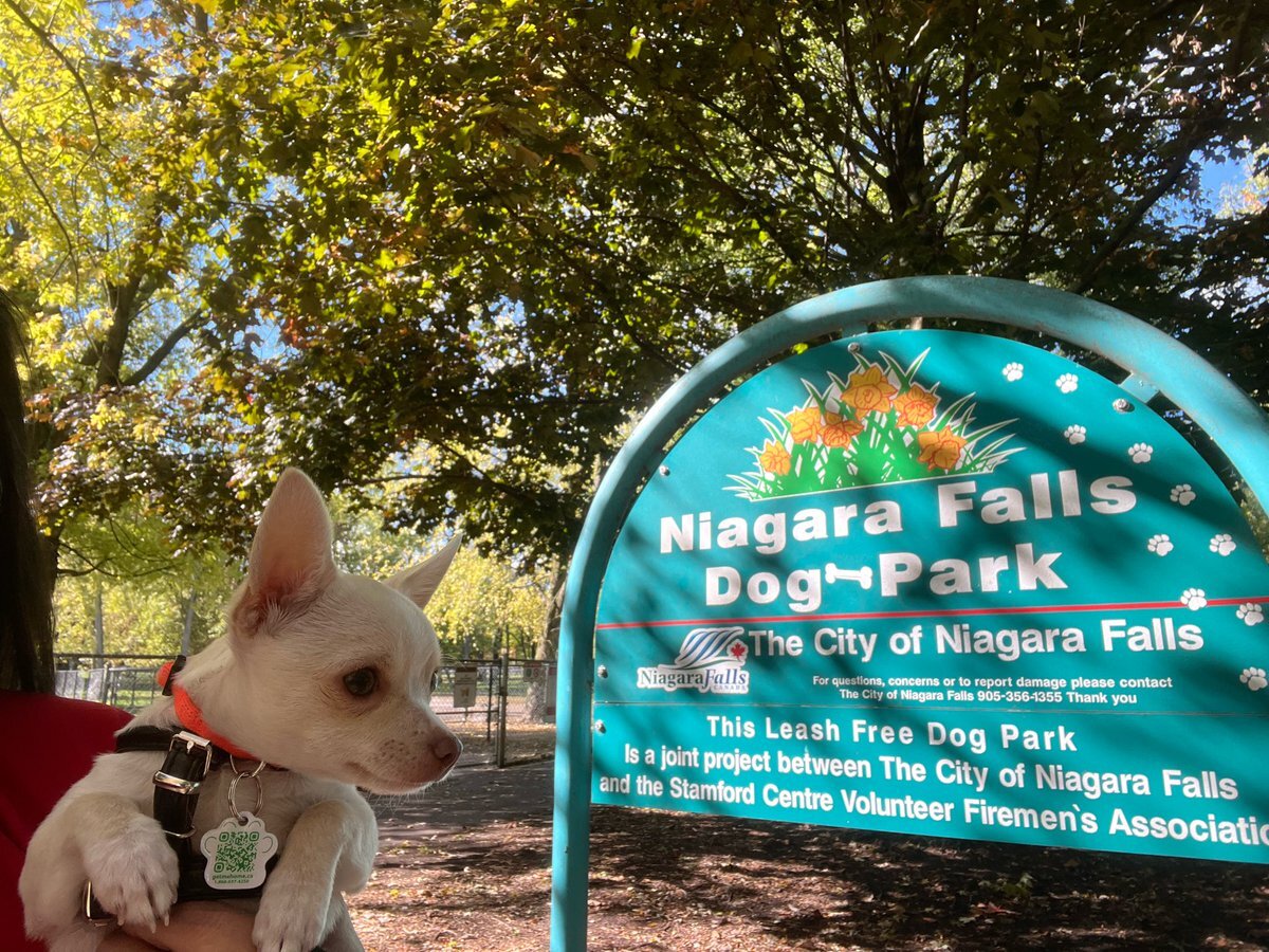 #今日のナイアガラ 先日買ったばかりのカーシートを使って、今日は嬉々くんとドライブへ。ドッグパークは、お散歩デビューも未だの嬉々くんにはちょっと早かったようです😅 #ナイアガラオンザレイク のバスパーキングは、紅葉がさらにきれいになっていました。 pic.x.com/hNdMfVcmL2
