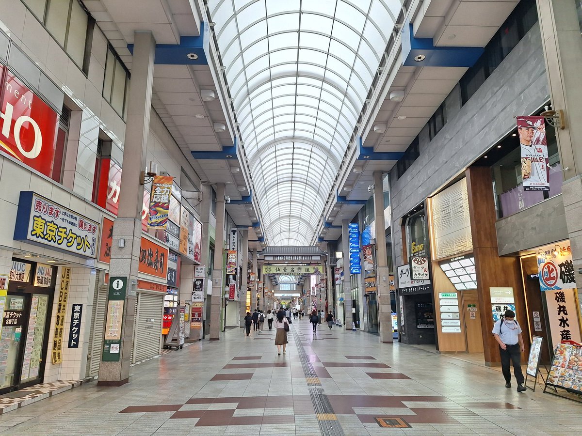 10月7日(火) こんにちは #仙台 はくもり、朝のうち陽ざしあるも、昼前にわか雨で12時10分までの最高気温は9時25分観測の19.8℃と肌寒く、正午前は18~19℃台 #今日の仙台#一番町一番街商店街 ( #ぶらんどーむ一番町 )界隈 #一番町アーケード街 あと半日よろしくお願いします pic.x.com/jJQLMQi92W