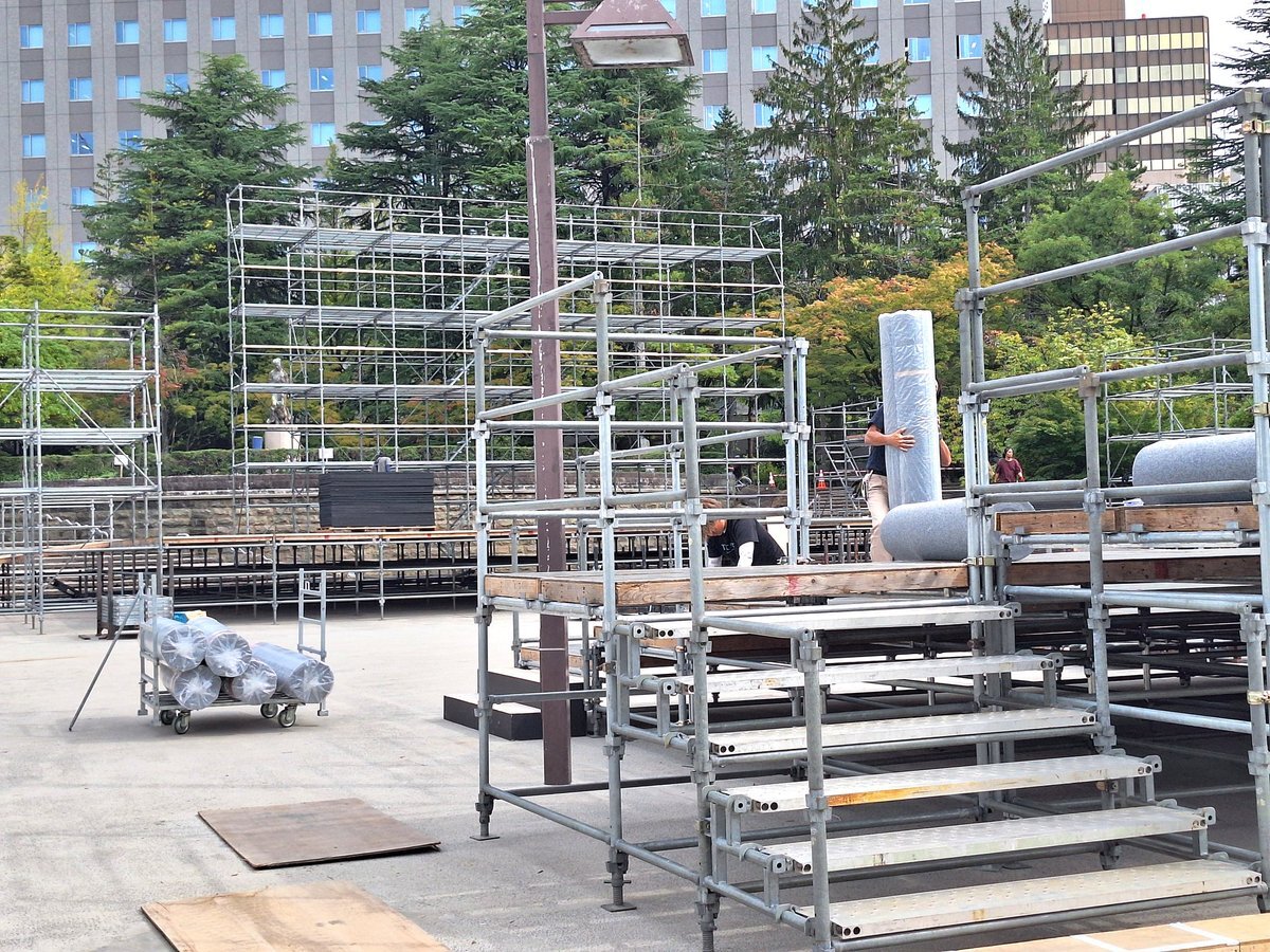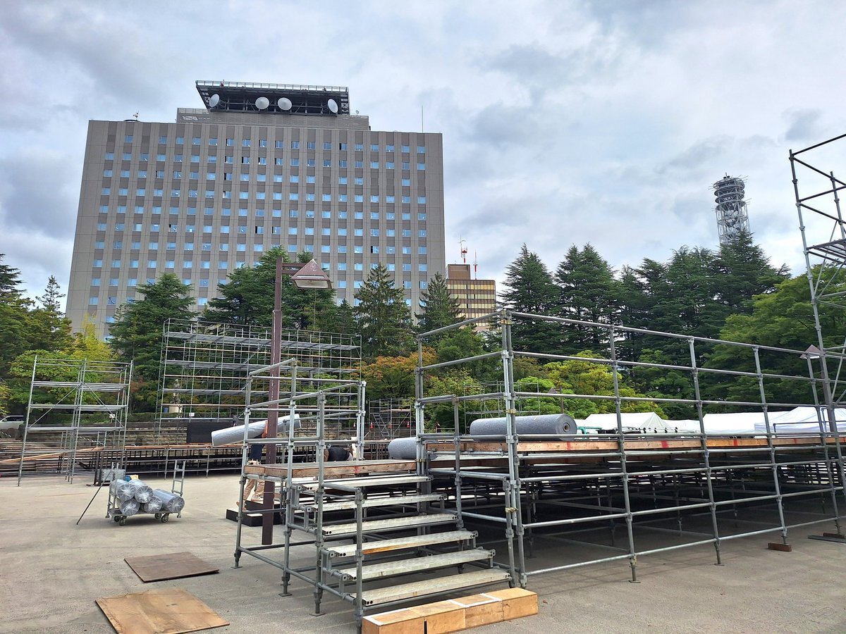 10月9日(木) こんにちは #仙台 はくもり時々晴れで12時までの最高気温は深夜0時32分観測の20.9℃で正午前は19℃台で推移 #今日の仙台 は今週末11~12日開催の第28回 #仙台みちのくYOSAKOIまつり2025 のメインステージなど準備中の #勾当台公園いこいのゾーン (県庁前) あと半日よろしくお願いします pic.x.com/SpYas7U1yf