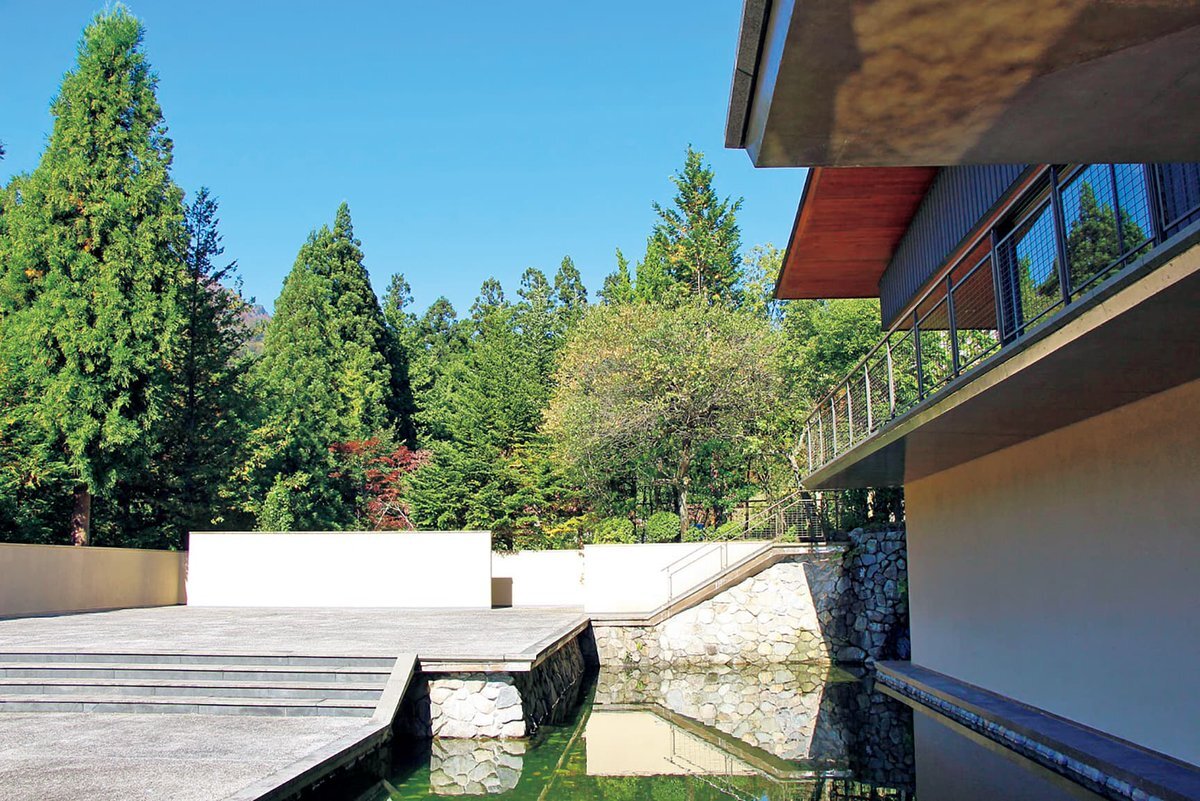 【 #今日の名建築 】1997年開館、吉村順三の遺作のひとつ〈天一美術館〉。谷川の岩壁の前に佇む建築は別荘のような趣で、エントランスからは平屋に見えますが、敷地の高低差を利用した2階建てになっています。 ⇒casabrutus.com/data/museums/3… pic.x.com/duYJ6AgKvx