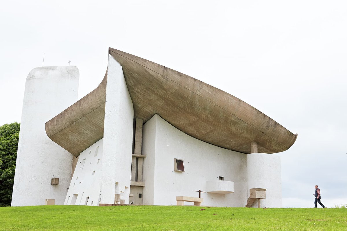 【 #今日の名建築 】1955年竣工、ル・コルビュジエ設計〈ロンシャンの礼拝堂〉。石積みにセメントを吹き付け石灰で白く仕上げた壁はそれ自体が柱の代わりとなって、コンクリート打ち放しの大屋根を支えています。 ⇒casabrutus.com/data/architect… pic.x.com/F1iCcu3Nr3