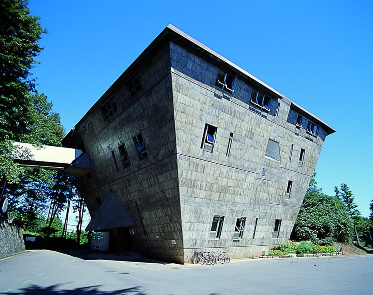 【 #今日の名建築 】1965年竣工〈大学セミナーハウス〉。大地に楔を打ち込んだような逆ピラミッド形の本館(写真)は、その景観とコンクリート打ち放しの荒々しい質感が見る者を圧倒します。 ⇒casabrutus.com/data/architect… pic.x.com/HKxz81GbR9