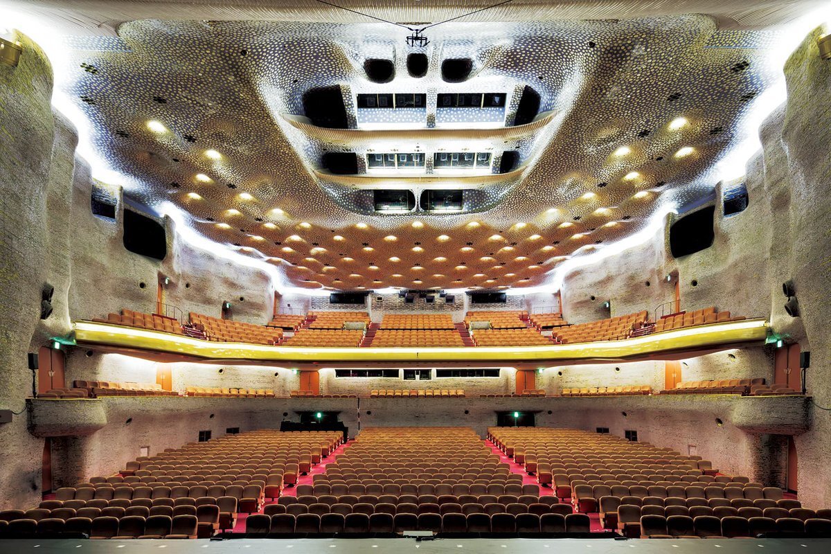 【 #今日の名建築 】1963開館、村野藤吾が手がけた〈日生劇場〉。天井に2万枚といわれるアコヤ貝が貼られ、壁を色とりどりのガラスモザイクが彩ります。 ⇒casabrutus.com/data/architect… pic.x.com/zcH5DdTZgE