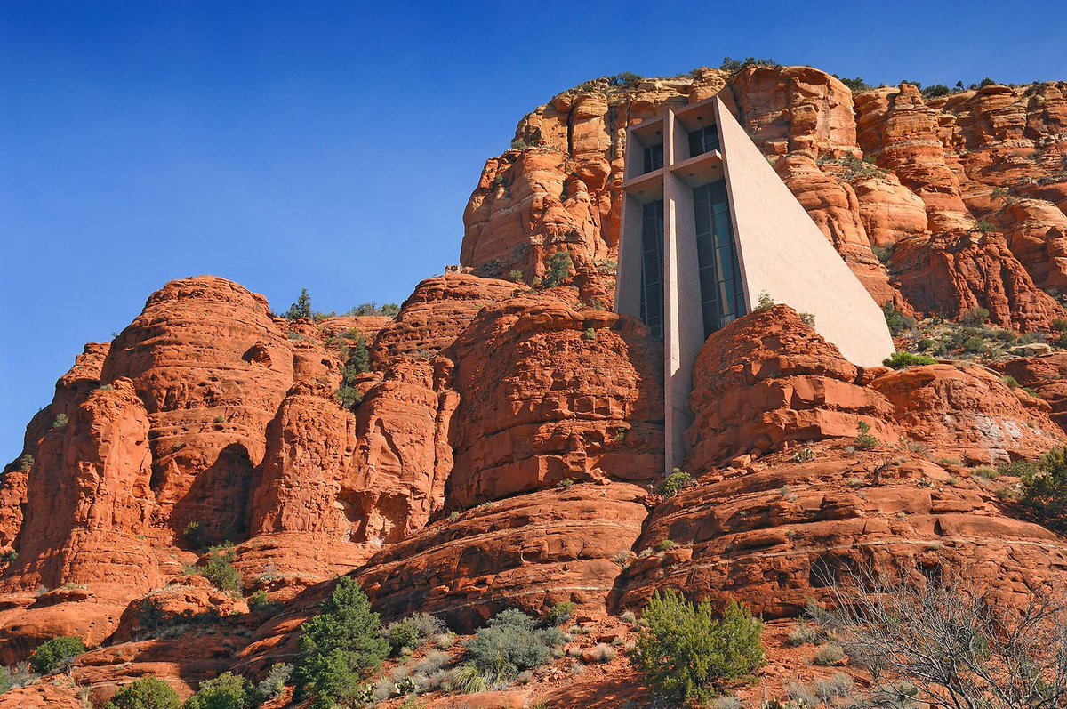 【 #今日の名建築 】1956年竣工、リチャード・ハイン設計〈ホーリークロス教会〉。砂漠の真ん中、赤茶色の岩山の上にそびえる小さなチャペル。十字架をかたどった窓が特徴的 です。 ⇒ casabrutus.com/data/architect… pic.x.com/mMhWsiY1sa