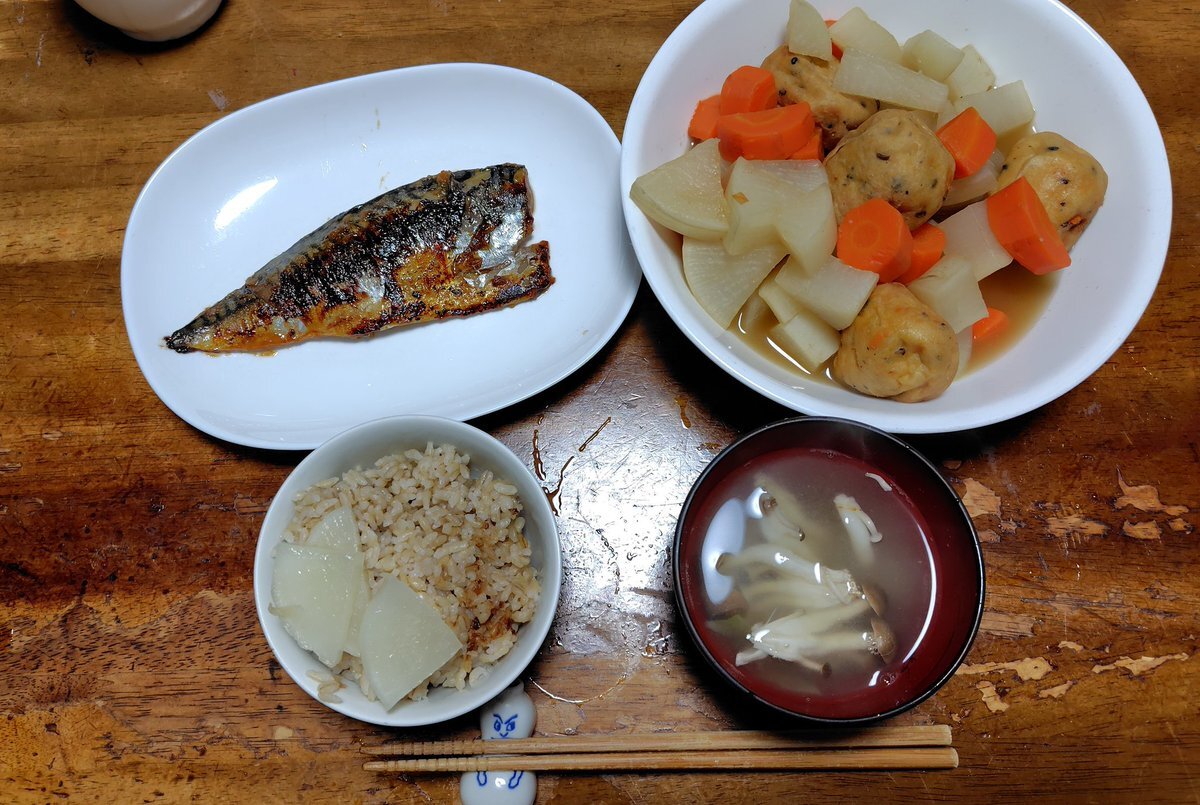 #今日の夕ごはん 11月12日(水) ・鯖の味噌漬け焼き ・がんもどきと根菜の煮物 ・しめじのみそ汁 #todaysdinner #焼魚料理 #grilledfish #鯖 #mackerel 買い物 ヨーグルトなど pic.x.com/8hs767yeSM