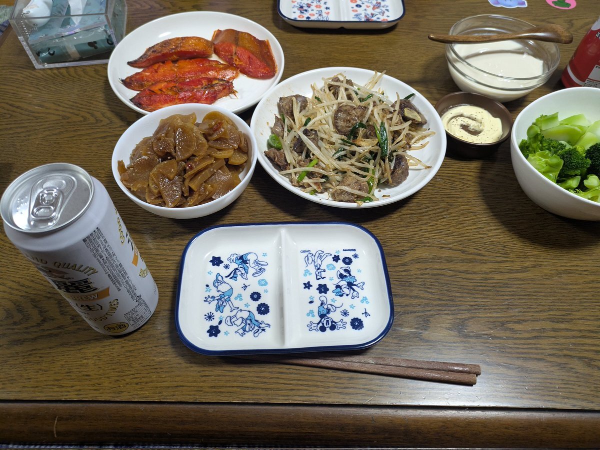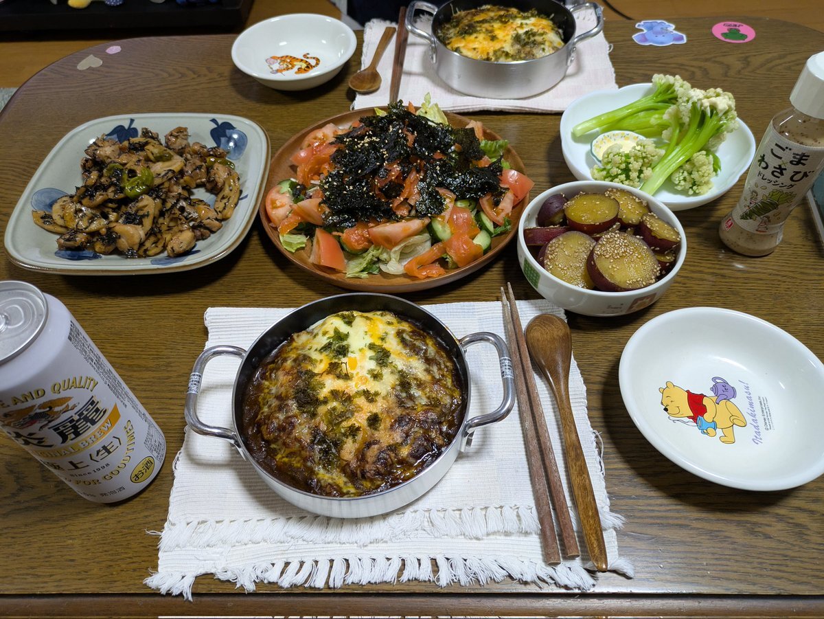 #今日の夕ごはん 久々妻の当番 焼きカレー ポキサラダ💦マグロ無くてサーモン!! 蓮根の鶏もも炒め さつまいもの甘煮 カリフラワースティック みんな旨かった😋 ていうより知り合いっちの娘が来る 予定なのに来ない😥!! pic.x.com/hyvtVWgJtY