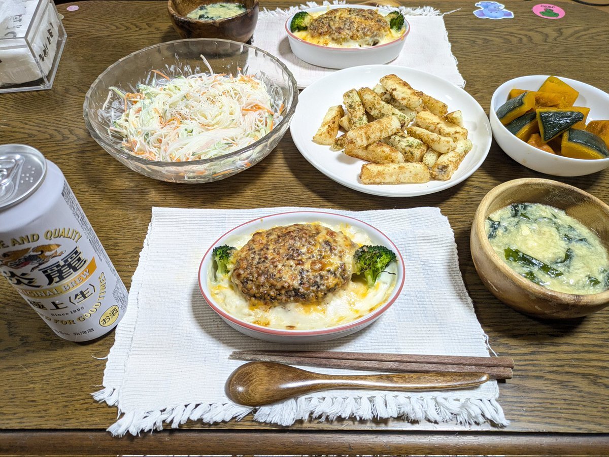 ・ひき肉じゃが ・かぼちゃとコーンのバター醤油炒め ・白菜と人参のナムルサラダ ・小松菜、椎茸のお味噌汁 #おうちごはん #料理好きと繋がりたい #今日の夕ごはん taittsuu.com/users/petitxch…
