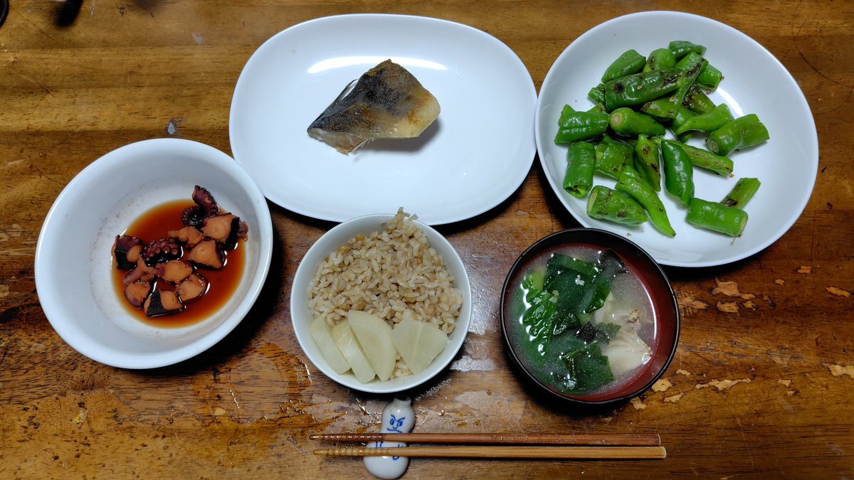 #今日の夕ごはん 11月18日(火) ・ほっけの干物 ・煮たこ ・焼き伏見とうがらし ・小松菜のみそ汁 ・大根の漬物 #todaysdinner #焼魚料理 #grilledfish #ほっけ 買い物 たこ(モーリタニア産)など pic.x.com/FL51sg7QtP
