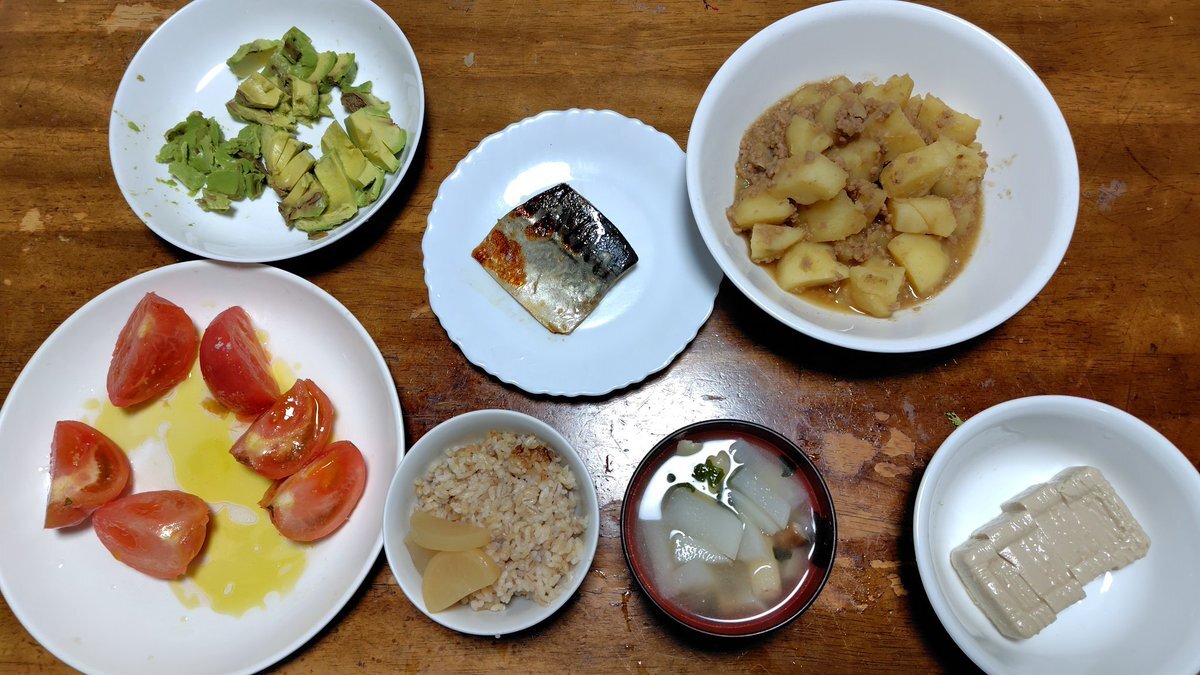 #今日の夕ごはん 11月11日(火) ・鯖の干物 ・じゃがいものそぼろ煮 ・トマト ・アボカド ・ごま豆腐 ・大根としいたけのみそ汁 #todaysdinner #焼魚料理 #grilledfish #鯖 #mackerel 買い物 ブロッコリーなど pic.x.com/h5pHI4nLC3
