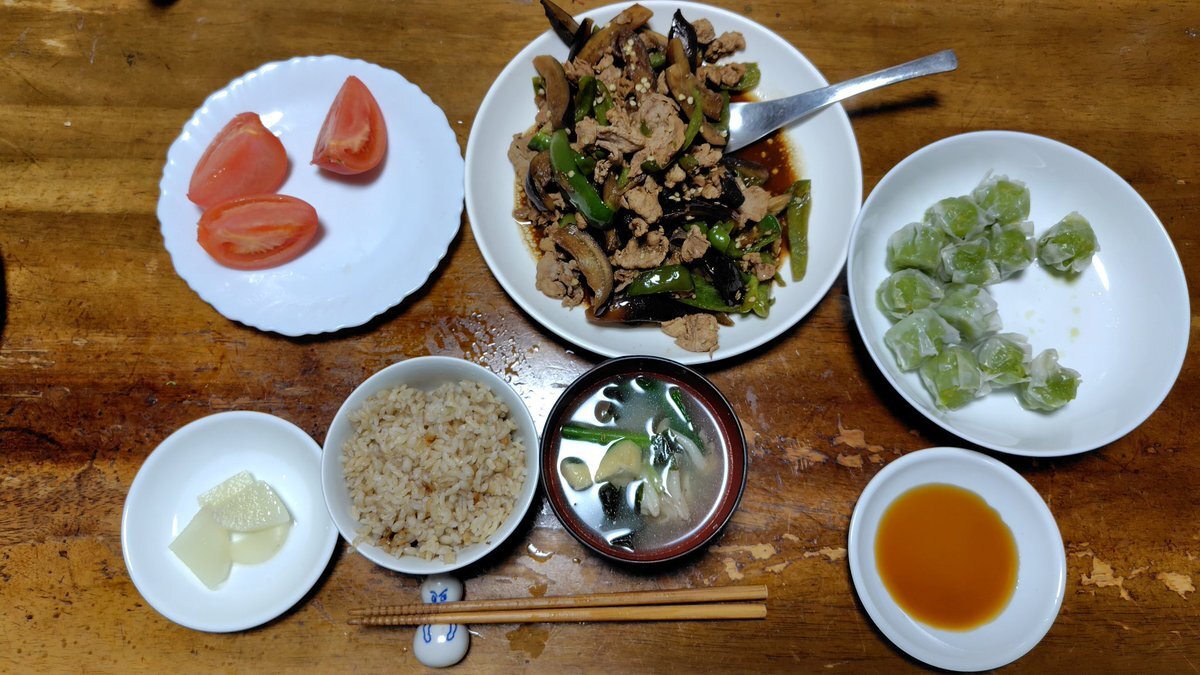 #今日の夕ごはん 11月19日(水) ・豚肉と茄子とピーマンの甘味噌炒め ・トマト ・小松菜としめじのみそ汁 ・大根の漬物 #todaysdinner #豚肉料理 #porkdishes 買い物 甜麺醤など pic.x.com/o1lDHE3ijJ
