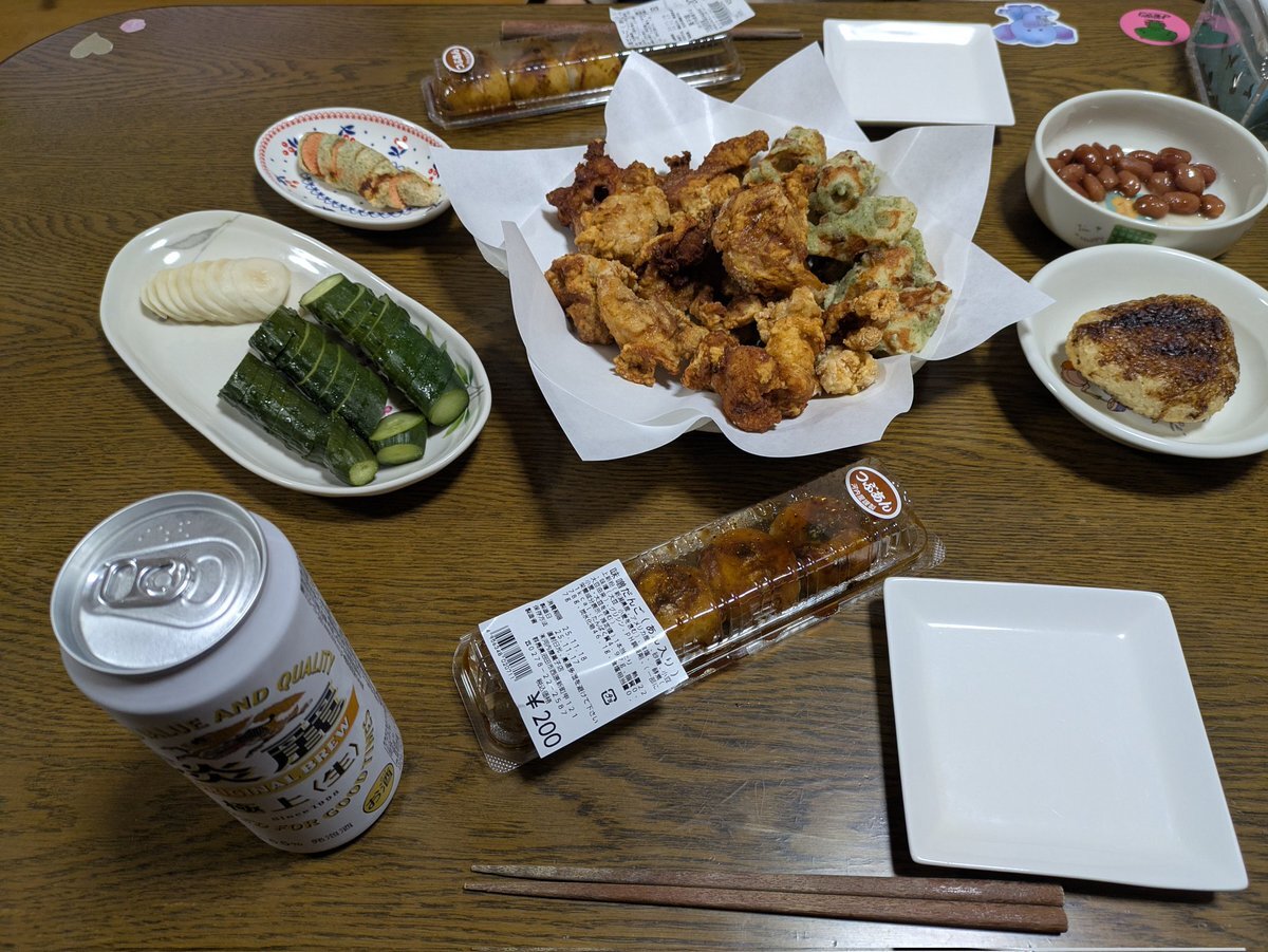 #今日の夕ごはん 私の当番 鶏もも唐揚げ 竹輪の磯辺揚げ 磯辺揚げ明太子 ぬか漬け 胡瓜,かぶ 今日買ってきた品 串あんこ入味噌だんご 沼田の落花生 旨かった↑👍️👍️ 明太子磯辺揚げ食べたくて夕飯作って しまった😅 pic.x.com/BfKgY9Nfka