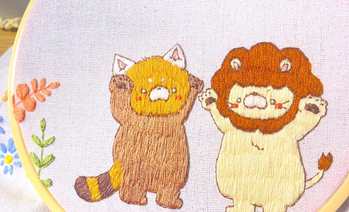 今日は刺繍作家の日🧵𓂃 𓈒𓏸◌ オーダーいただいてるご兄弟の命名書を チクチク……チクチク·̩͙𓍯 やっぱりあにまるの刺繍好きだなぁ🧸ིྀ #刺繍 #手刺繍 #命名書 #今日の手仕事 #ライオン #レッサーパンダ #ハンドメイド #オーダーメイド #刺繍好きさんと繋がりたい pic.x.com/O31C6AryDA